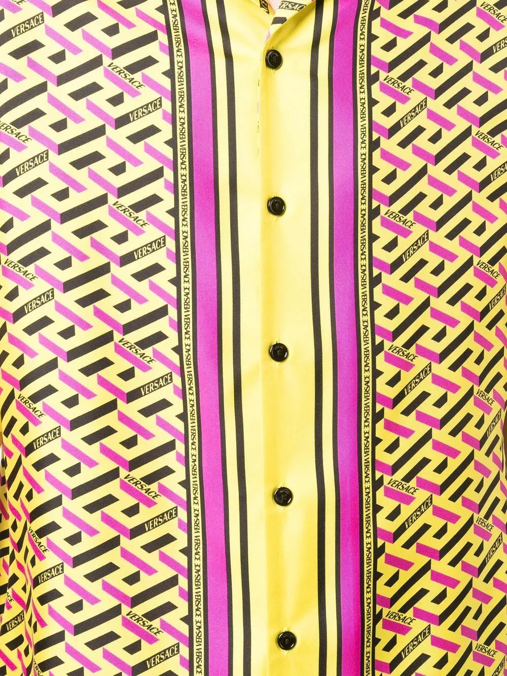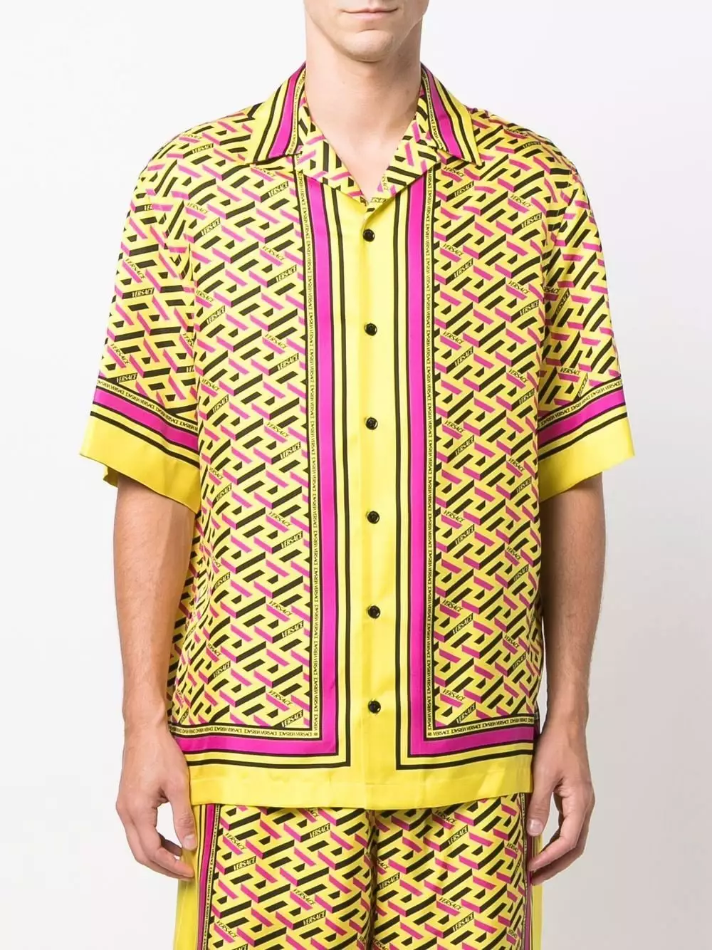 Versace hits refresh on the Medusa Head motif associated with the Italian house. Cut from smooth silk, this half-sleeve shirt has an all-over abstract print and a graffiti iteration of the mythological figure on the rear.