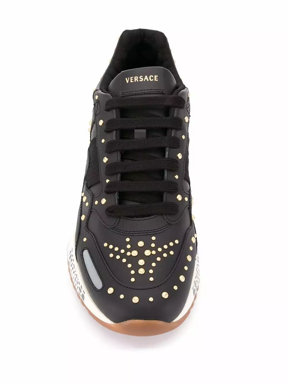 Baby let me upgrade you… Constructed from supple leather, these Achilles sneakers from Versace have the power to elevate your look, while they keep you comfortable all day. Go Versace or go home.