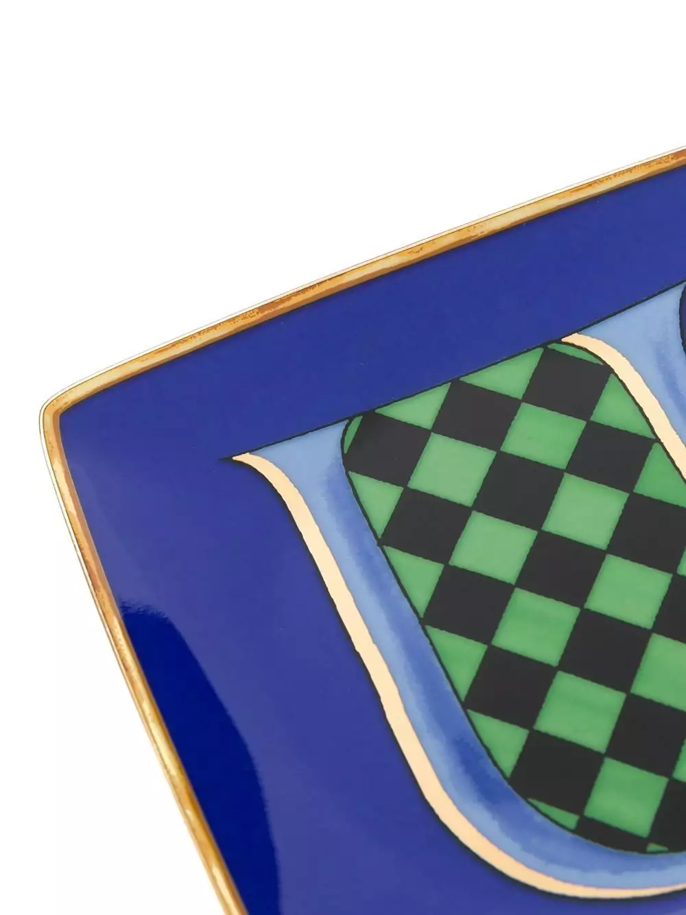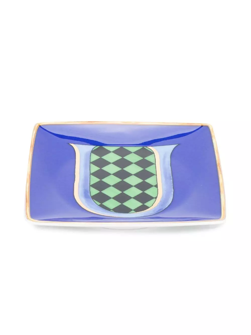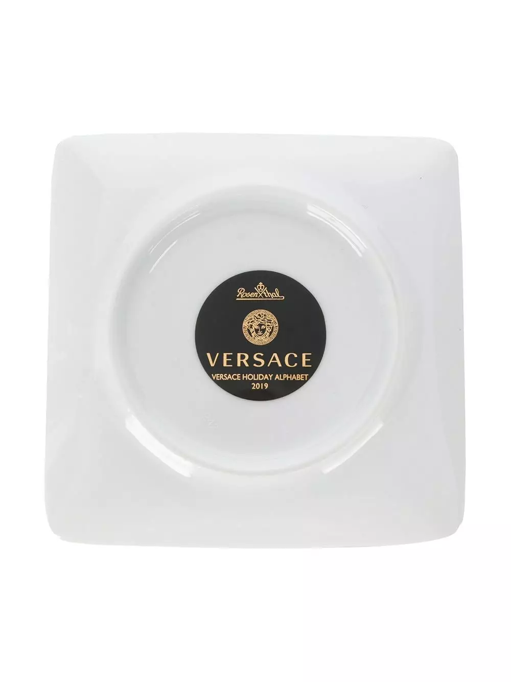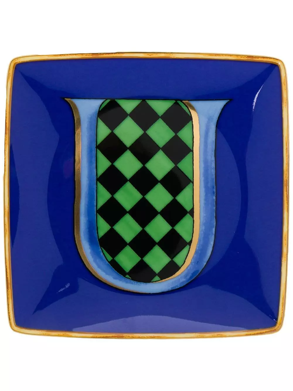 Multicolour porcelain Alphabet U plate (12cm) from Versace Home featuring a painted and glazed finish and gold trims.