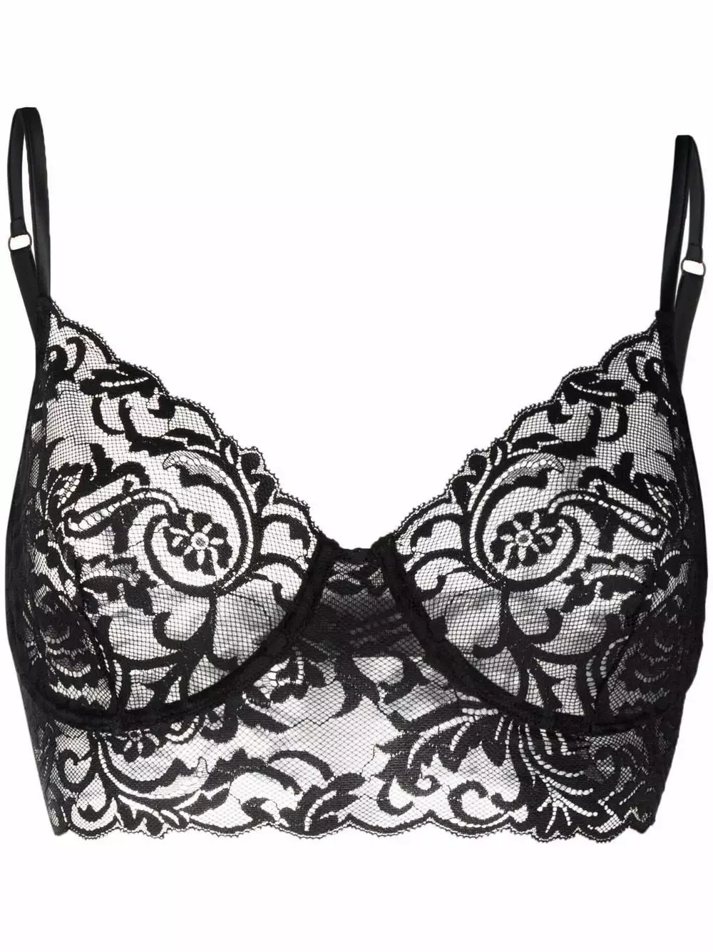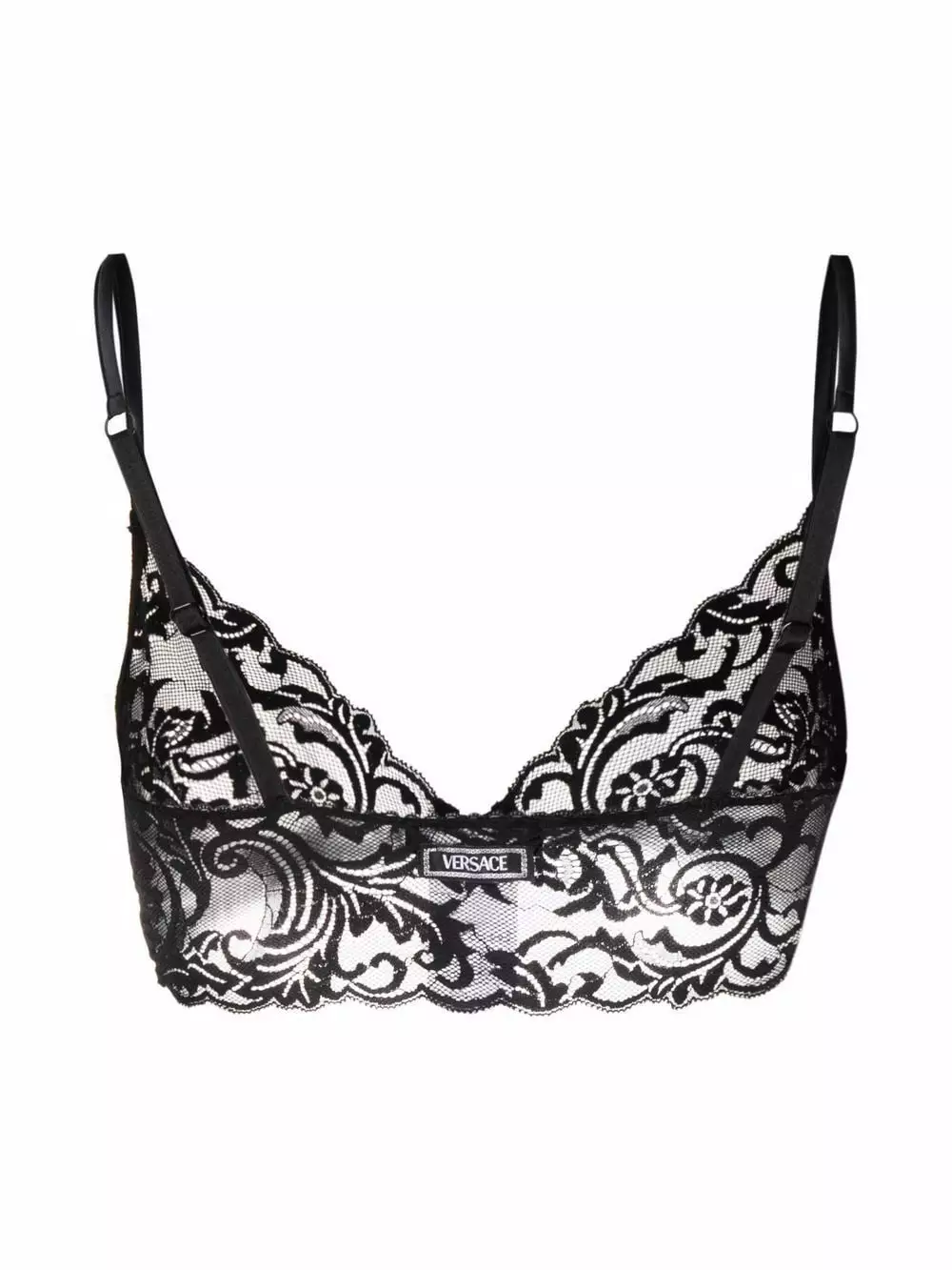 Versace brings its luxurious approach to fashion to its underwear offering, as is evident by this semi-sheer bra. The Italian brand’s signature Barroco print is seen here in a delicate lace-embroidered design.