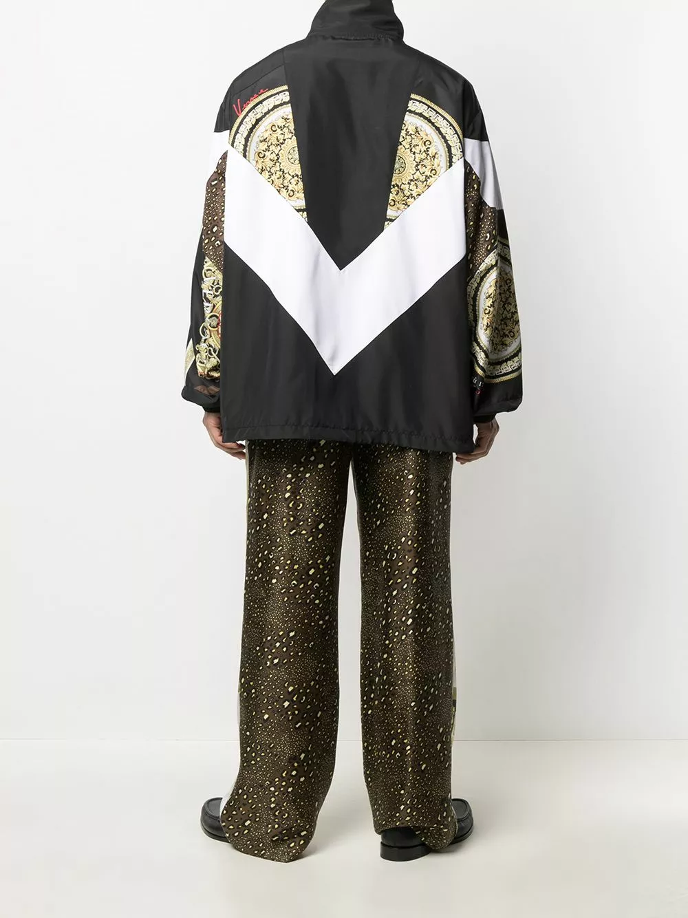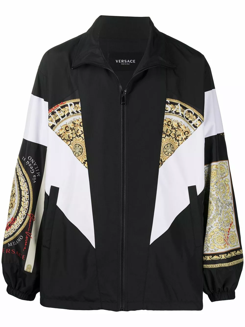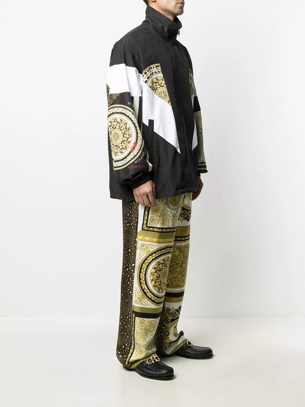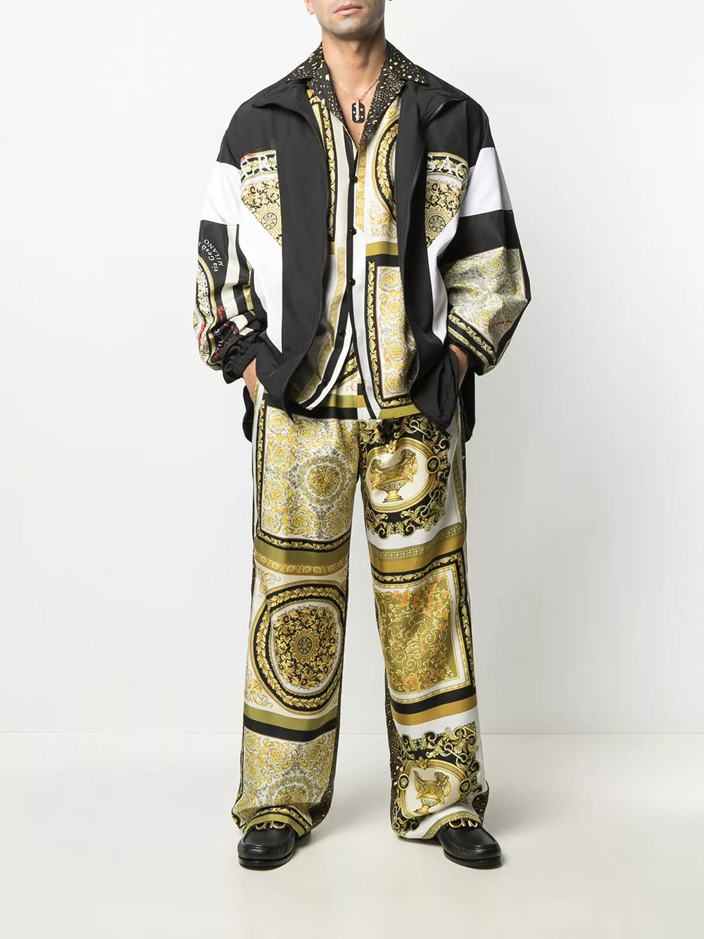 Relaxed style done right, courtesy of Versace. Featuring a Barocco Mosaic print, a patchwork of heritage designs, this oversized jacket will add a touch of boldness to a casual outfit. Make a statement.