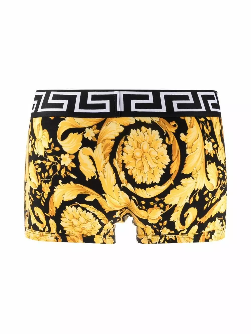 This season, Versace takes on underwear with its signature opulent flair. Decorated with the brand’s gold-tone Barocco print, these boxer trunks showcase the brand’s distinctive design.