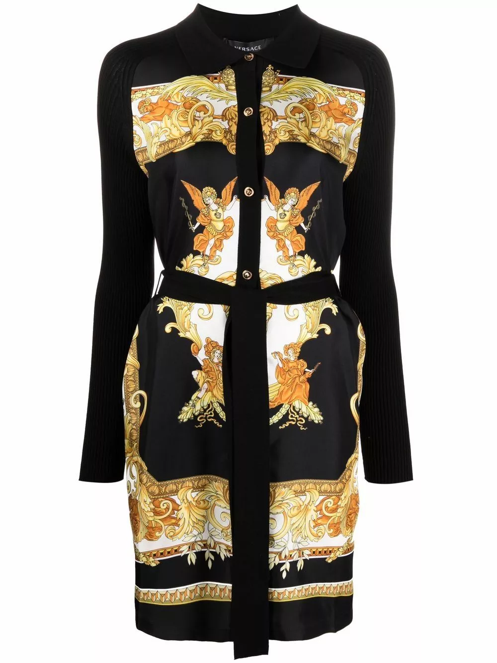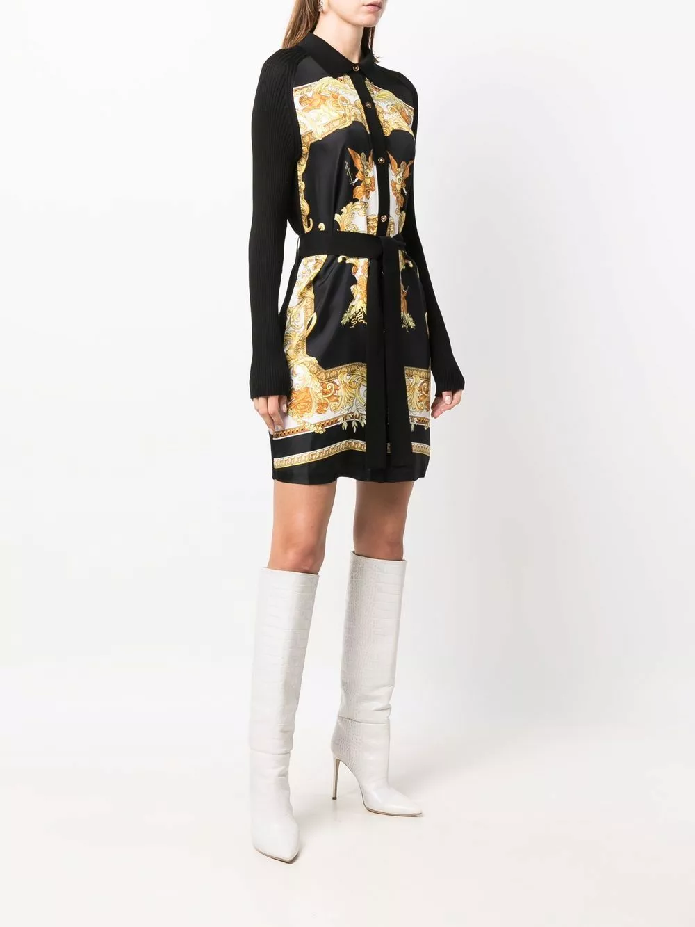 This latest offering from Versace is unmistakeably referencing the heritage of the Italian brand. Sporting Barroco-print inspired panels, this knitted dress is finished with gold-tone Medusa embossed buttons.