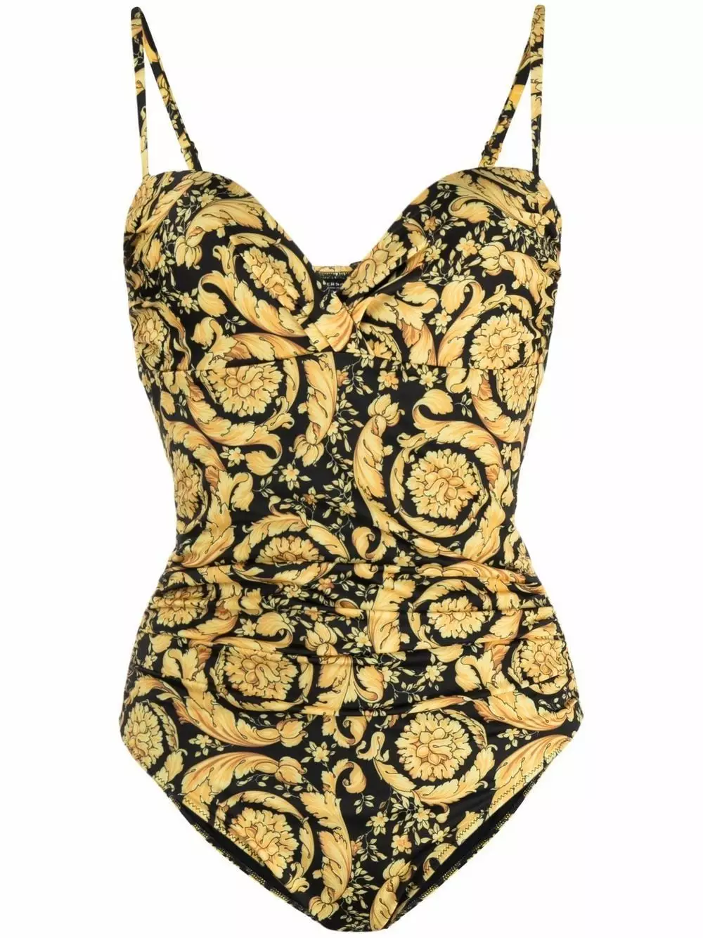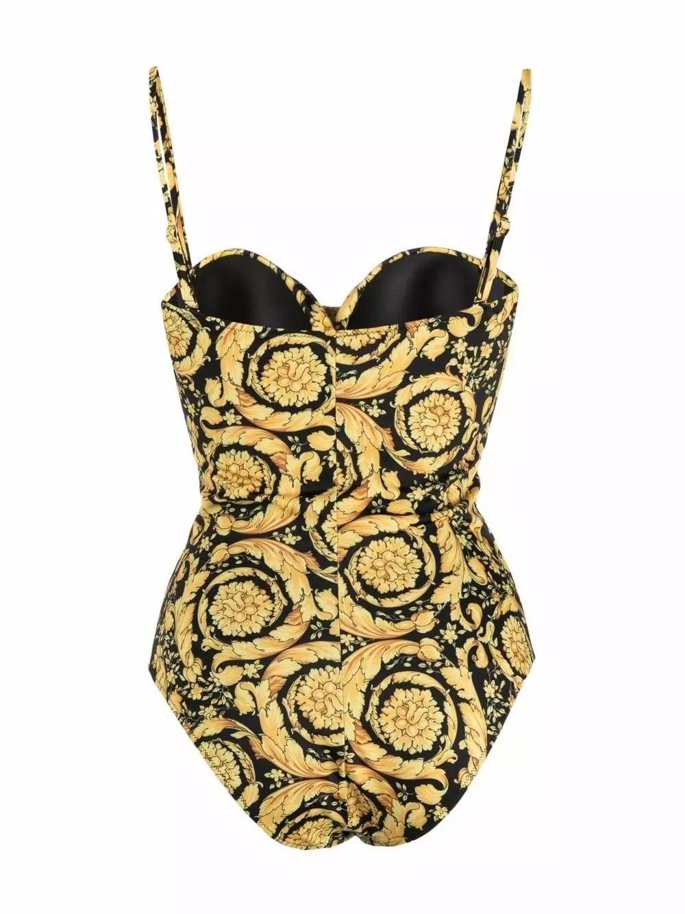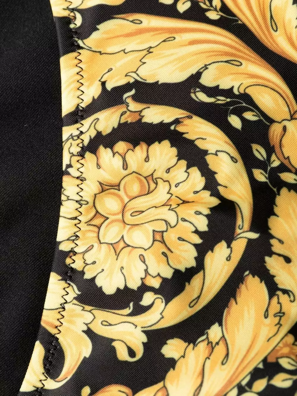 This sweetheart neck swimsuit from Versace AW21 is detailed with an all-over Barocco print. Fabricated in Italy with ample stretch, the one-piece design features underwired cups.