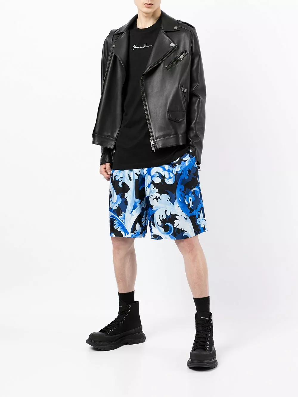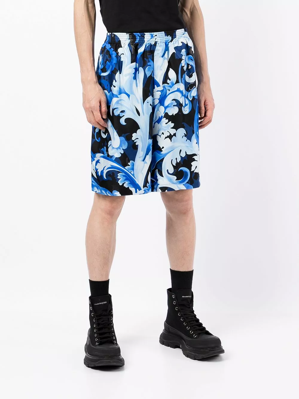 Versace plays with the brand’s iconic pattern and the concept of camouflage with these Baroccoflage-print shorts. Designed with a comfortable elasticated waistband, this blue pair is aligned with the brand’s opponent style.
