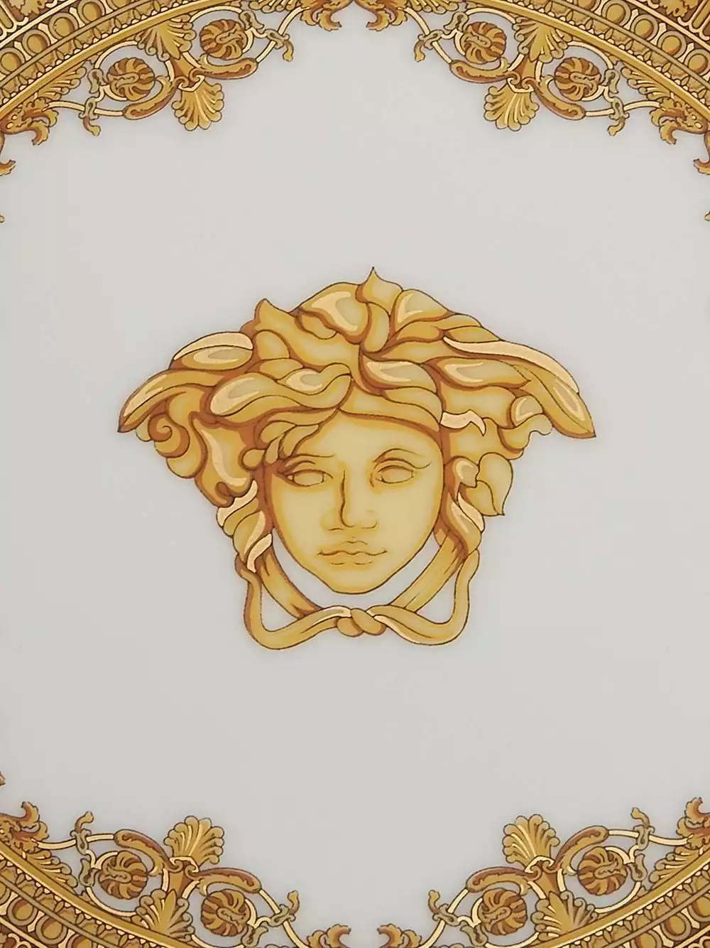 The new Versace homeware collection is all about sophisticated chic pieces. Like this Baroque Nero plate, adorned with a golden Medusa head in the center.