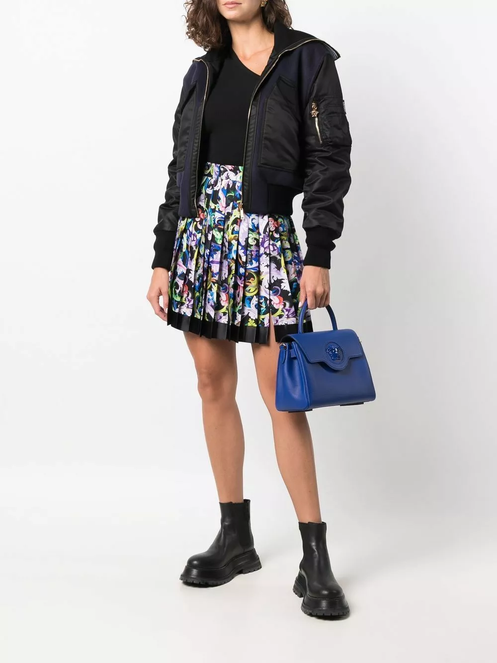 Versace showcases a contemporary take on the brand’s signature baroque-pattern print. Featured as an all-over design on this pleated skirt, it adds a sense of opulence in a modern and playful way, reiterating the House’s bold design style.