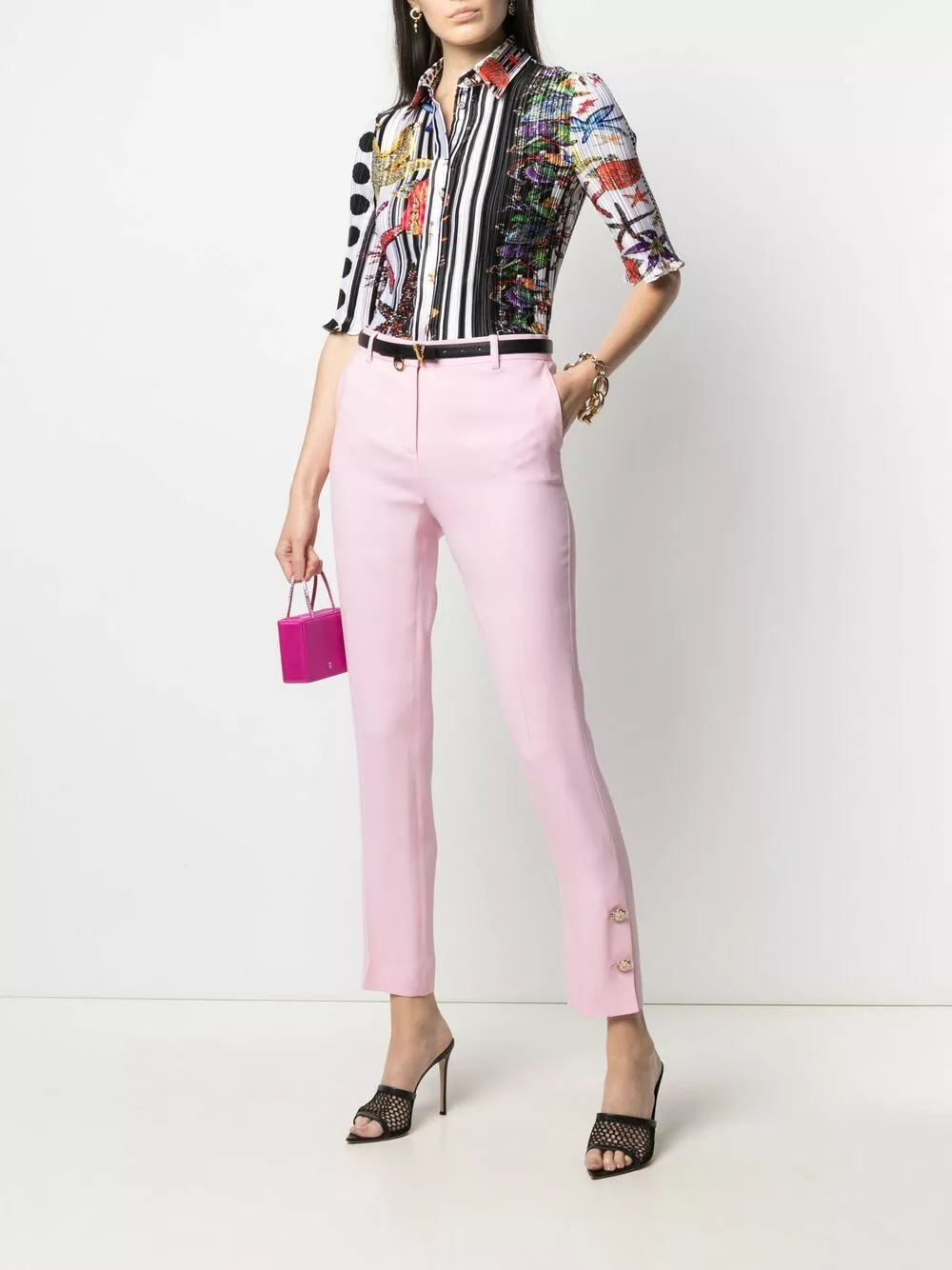 Not your typical skinny trousers. This pair from Versace boasts decorative button detailing inspired by the House’s seasonal motif, the Trésor de la Mer. A treasure for a treasure.
