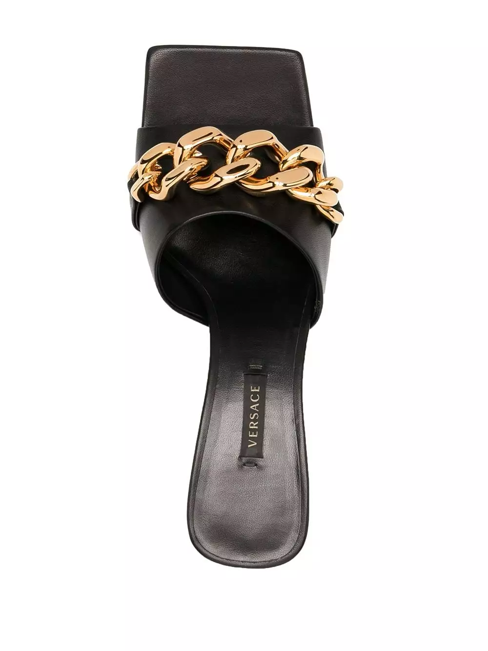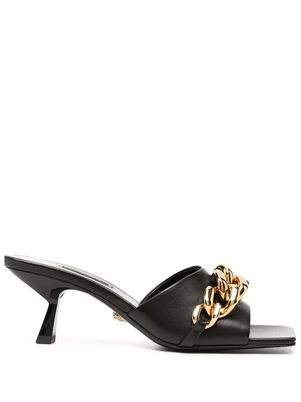 You can’t always get what you want. Luckily for you, that does not apply to these Versace sandals, that are ready to jump right into your collection with their chain-embellished design and practical slip-on construction. You want it, you got it.
