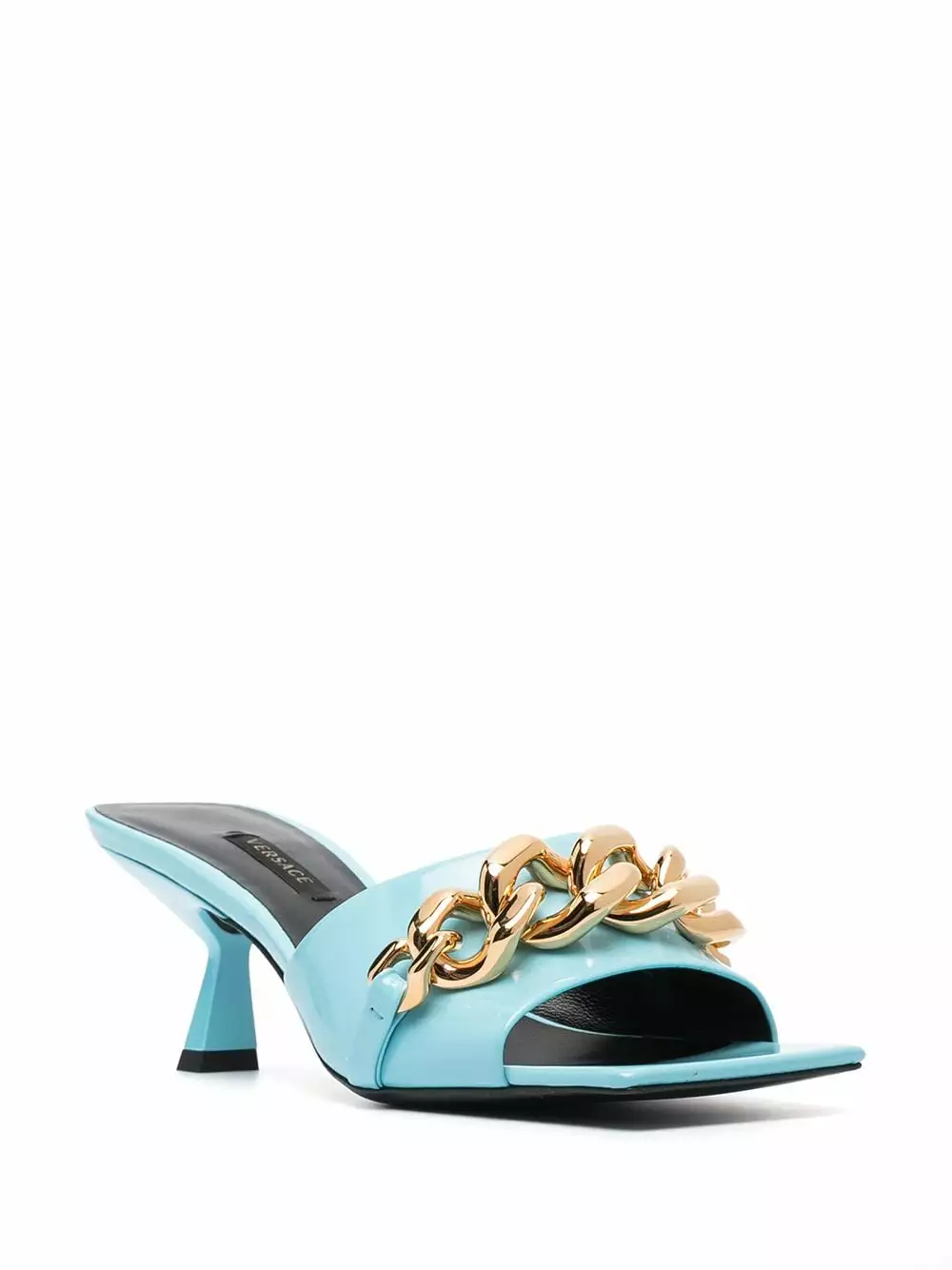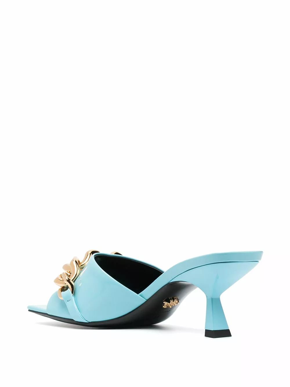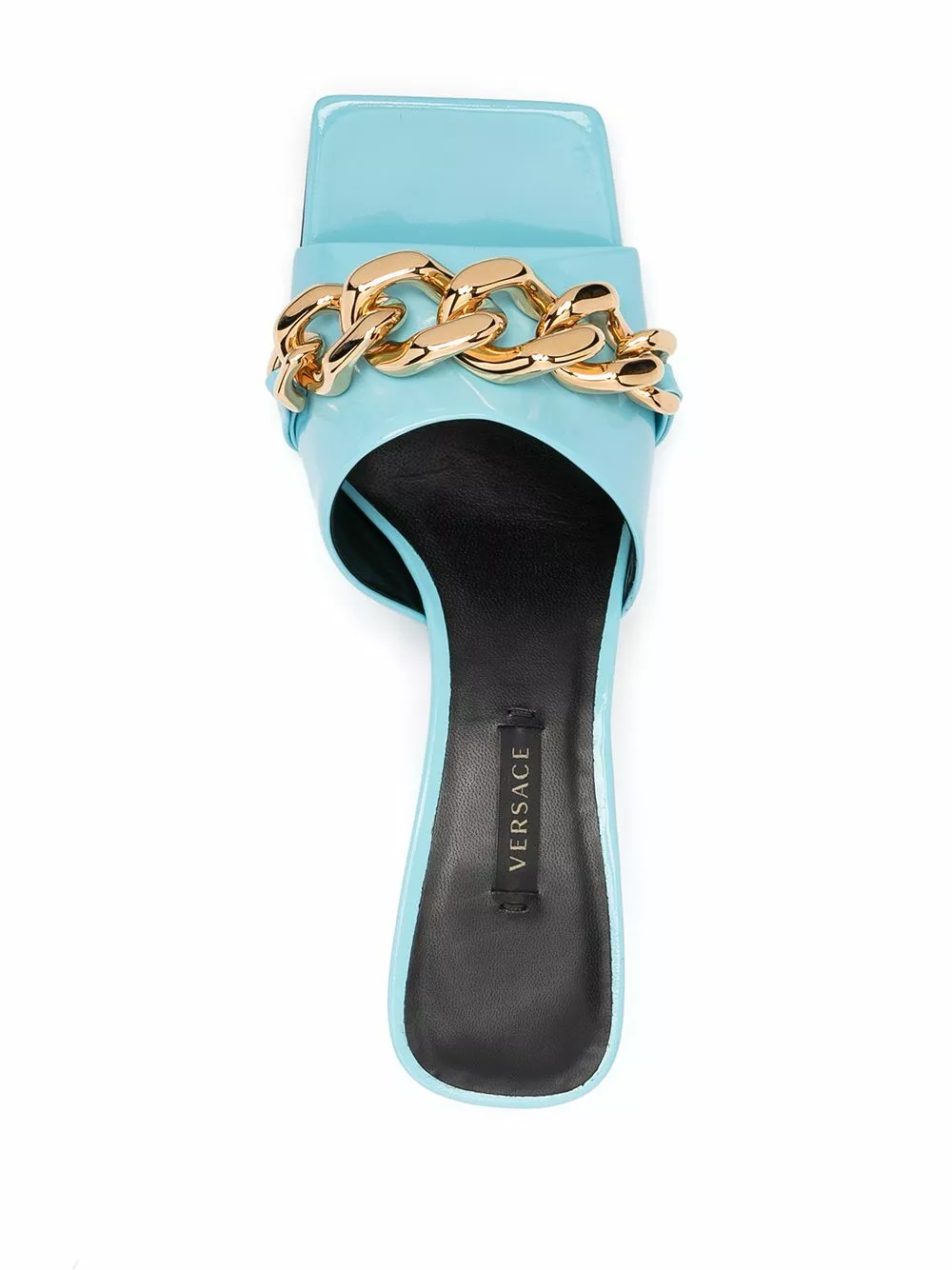 Do you ever feel like you are walking on clouds? Well, prepare to do so with these blue chain-embellished mules from Versace that will improve your outfit and your mood. The only blue thing will be your shoes.