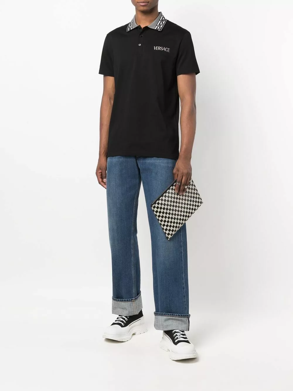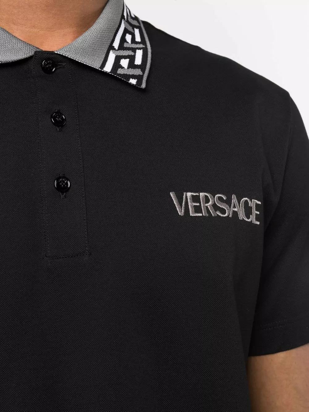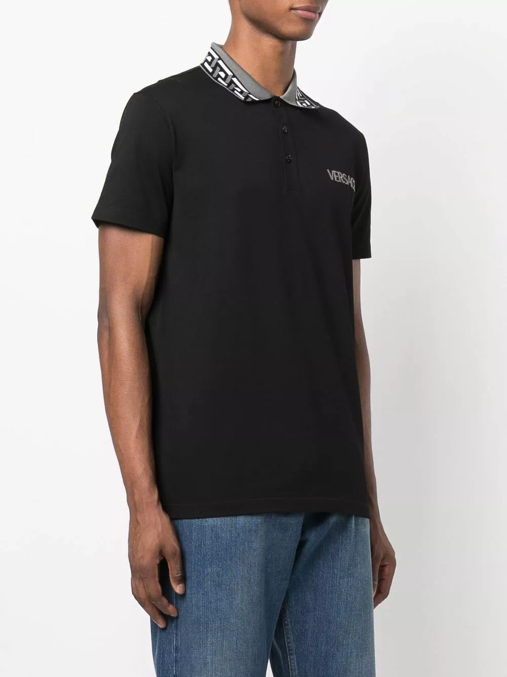 This piqué polo shirt has been adorned with a collar that showcases Versace’s new motif – the La Greca pattern. It reimages a House hallmark by rendering in 3D the signature Greek Key motif.