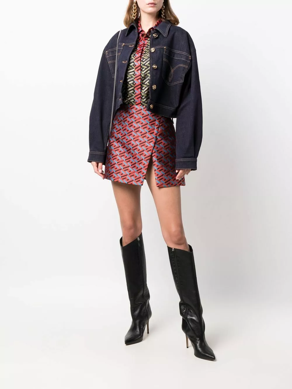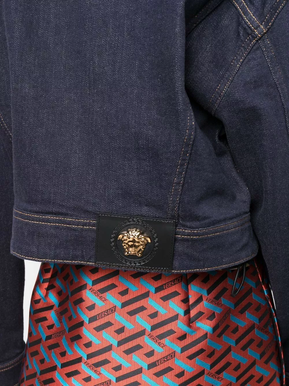 Versace’s denim jacket is given a polished finished thanks the Medusa plaque buttons. The same motif featured on the doors of the brand’s first headquarters in Milan.