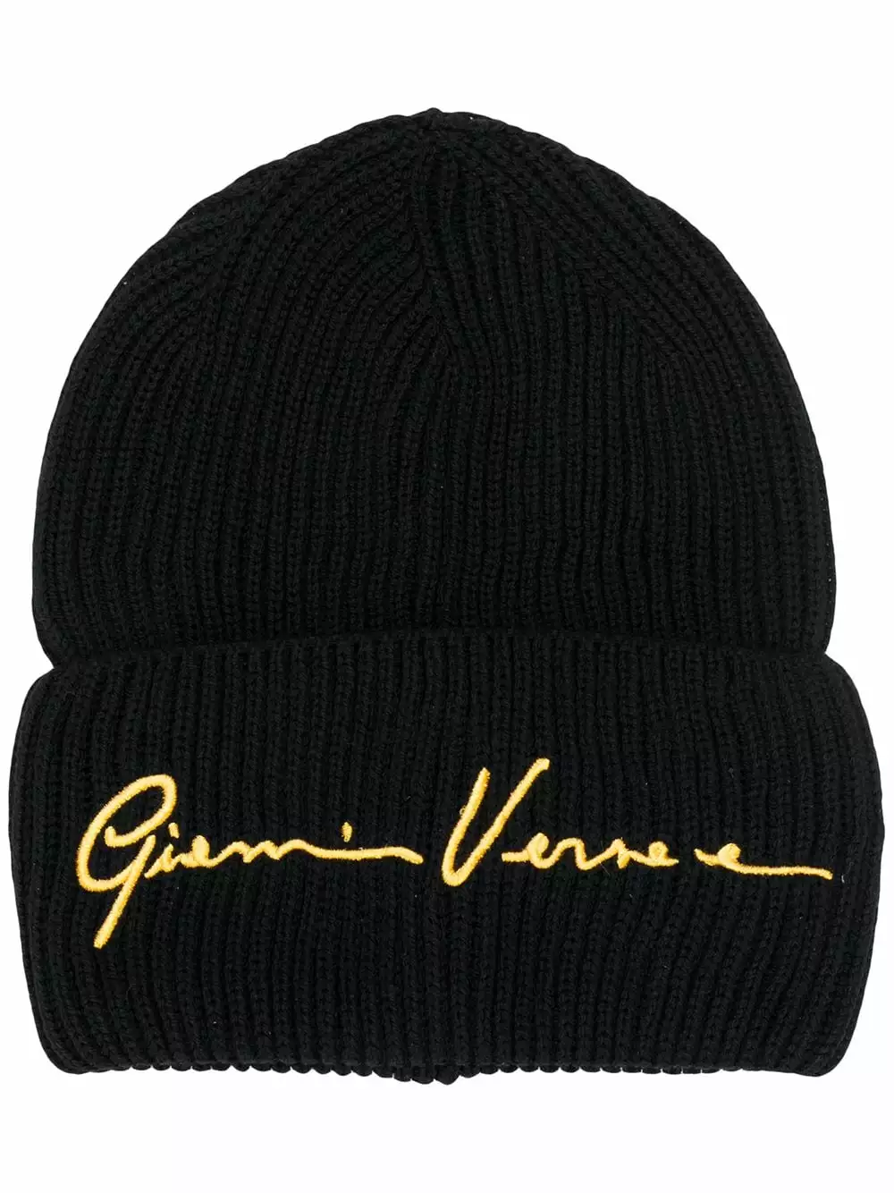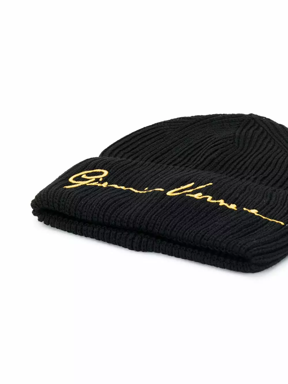 Pay homage to Versace’s very own founder Gianni Versace with this black wool logo embroidered beanie. Signature included. Featuring a ribbed knit, turn up hems and an embroidered logo to the front.