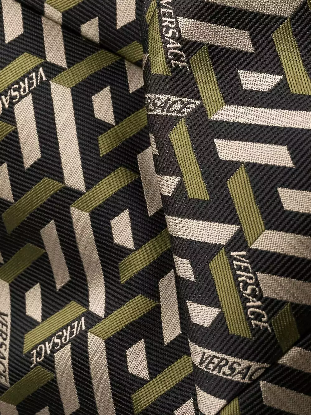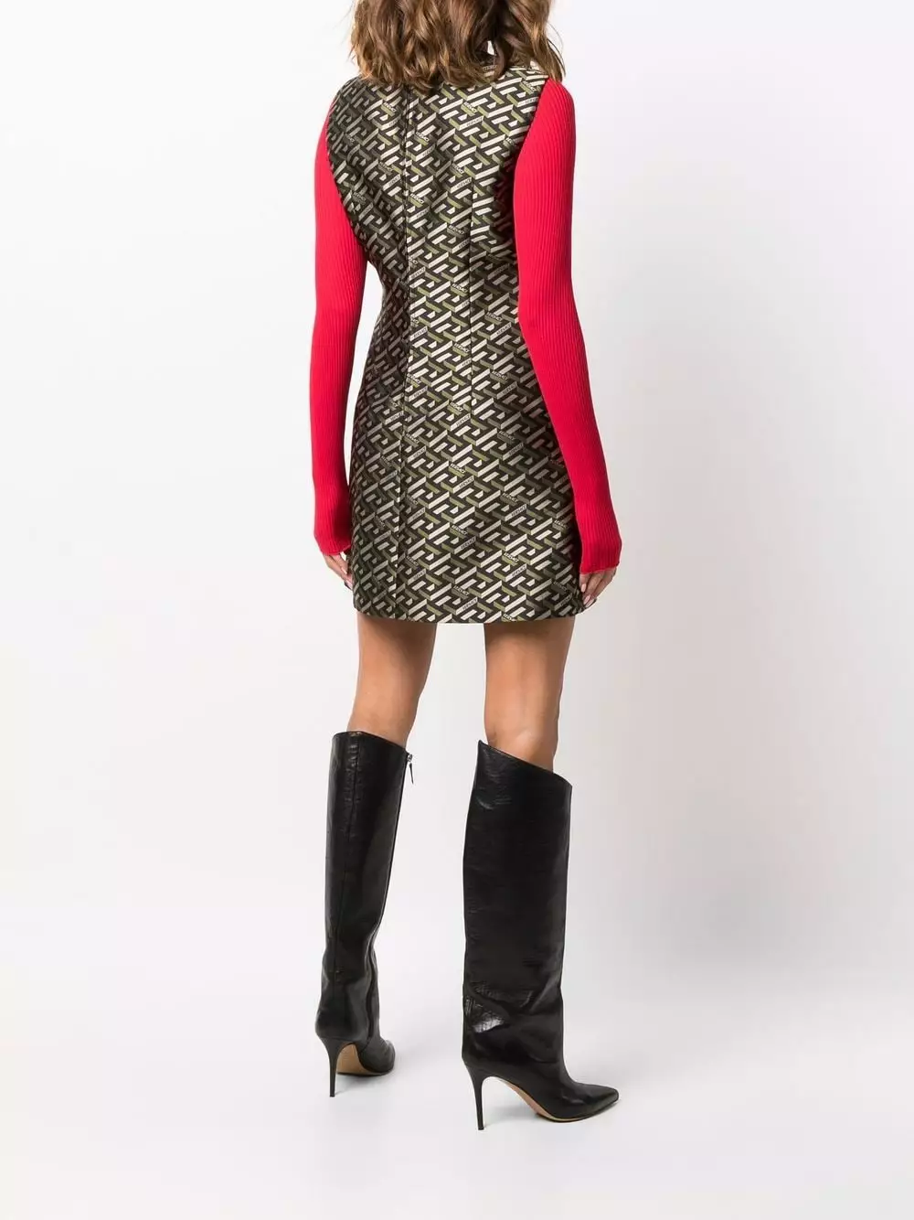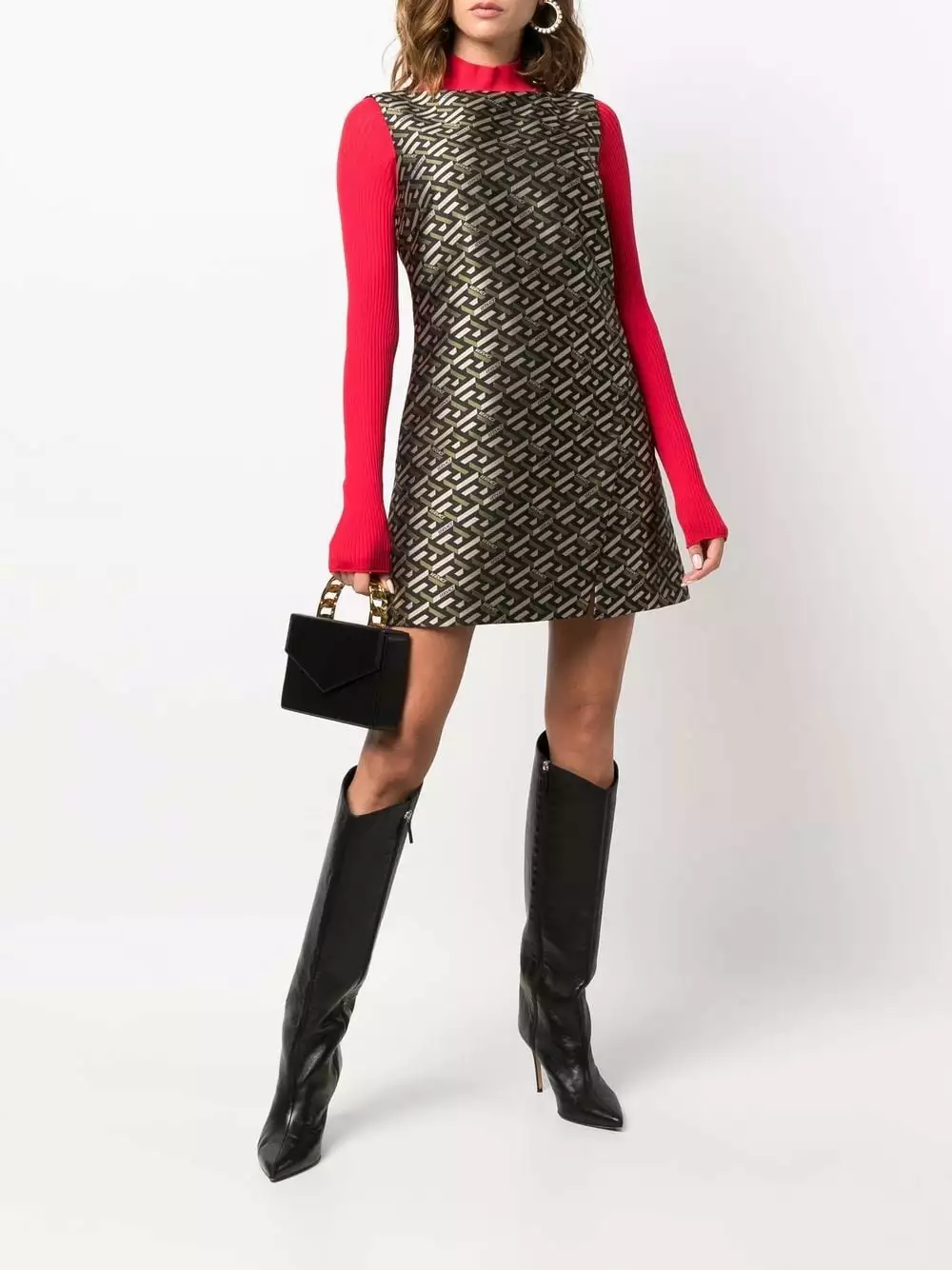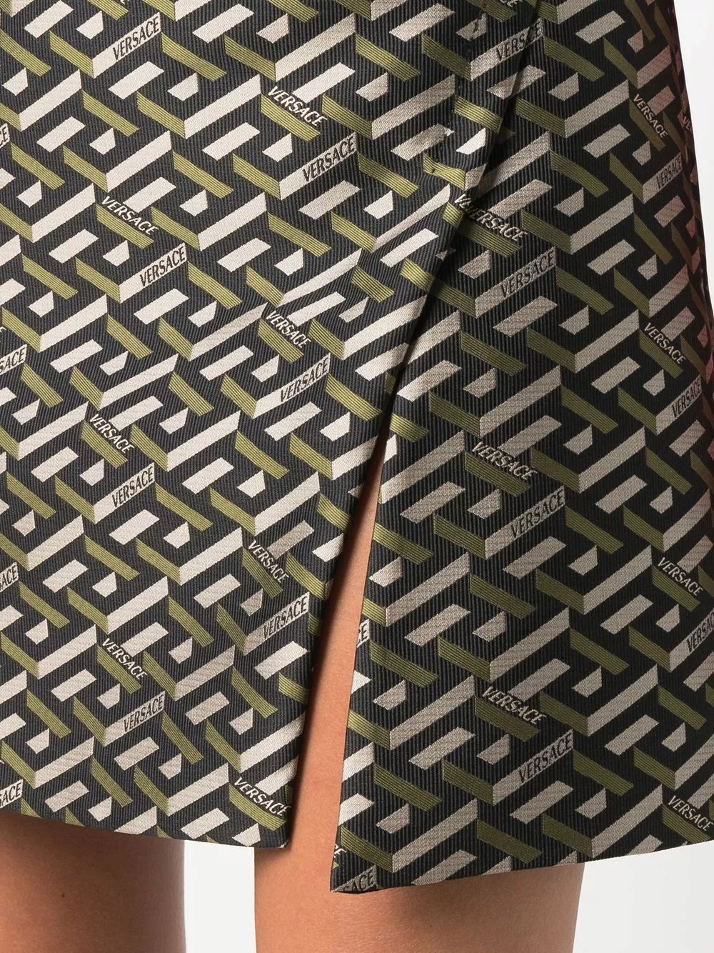 Woven with a hint of silk, this shift dress from Versace has a jacquard-woven pattern. The short design is decorated with an all-over geometric pattern.