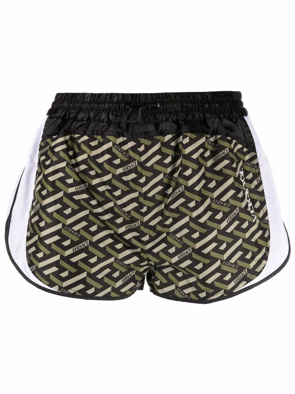 Versace offers bold style with a comfortable fit with the introduction of these shorts. Falling to a short thigh-length, this pair has been crafted from lightweight technical fabric and decorated with a geometric print.