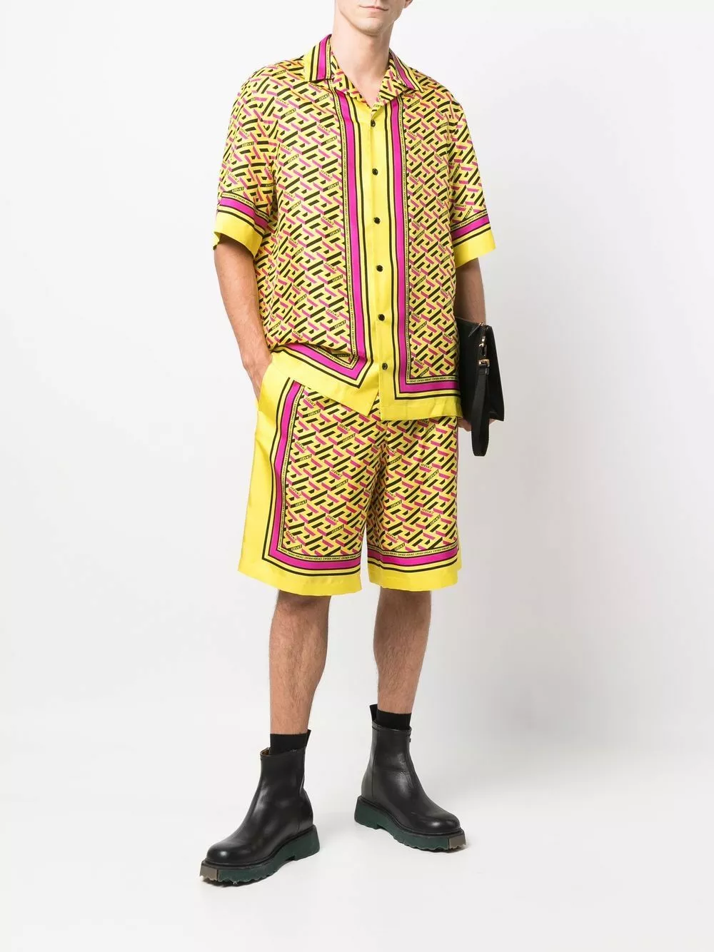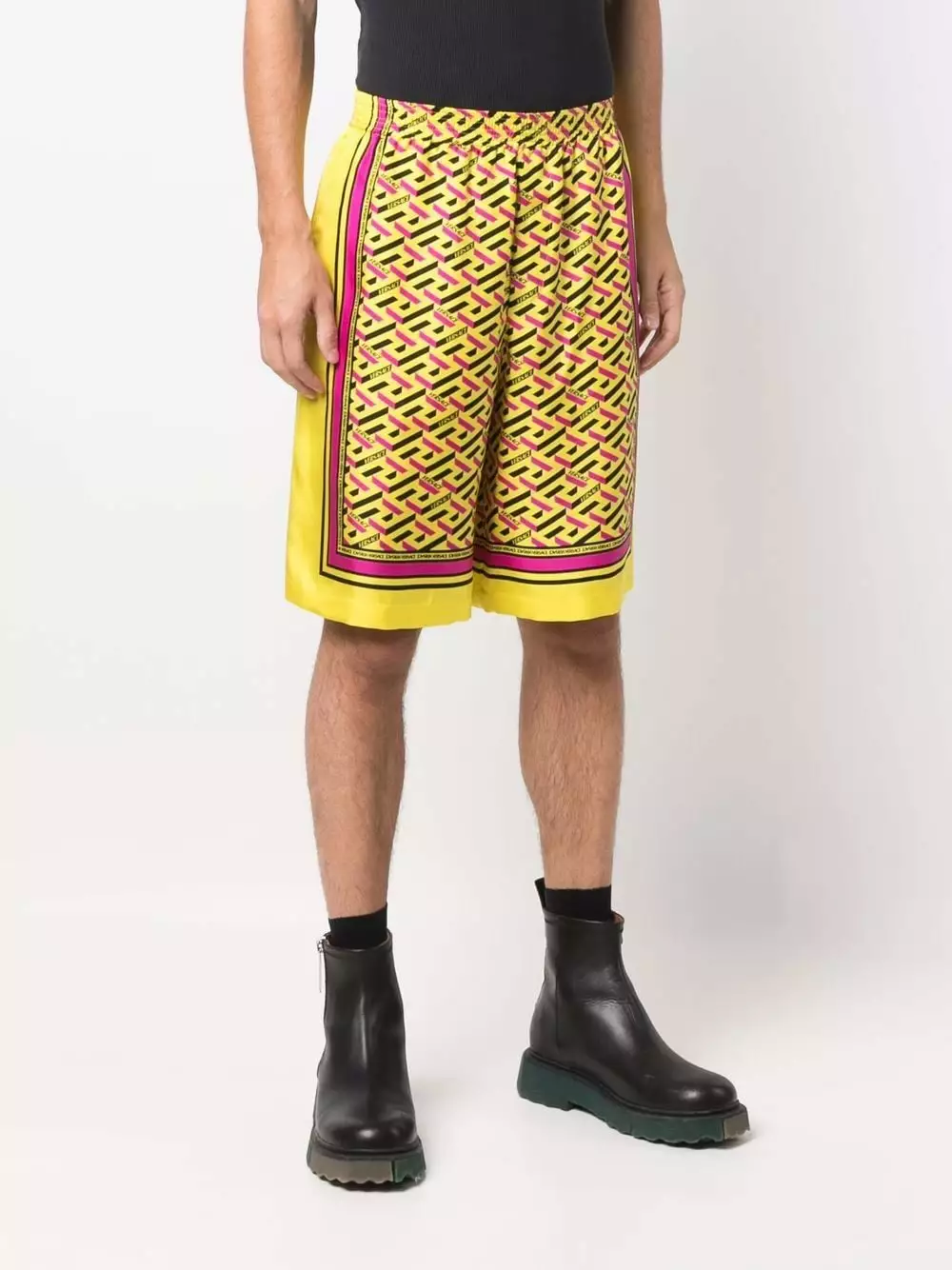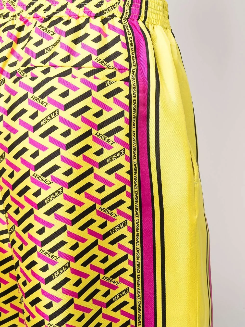 Versace offers bold style with a comfortable fit with the introduction of these shorts. Falling to a knee-length, this pair has been crafted from silk and decorated with a geometric print.