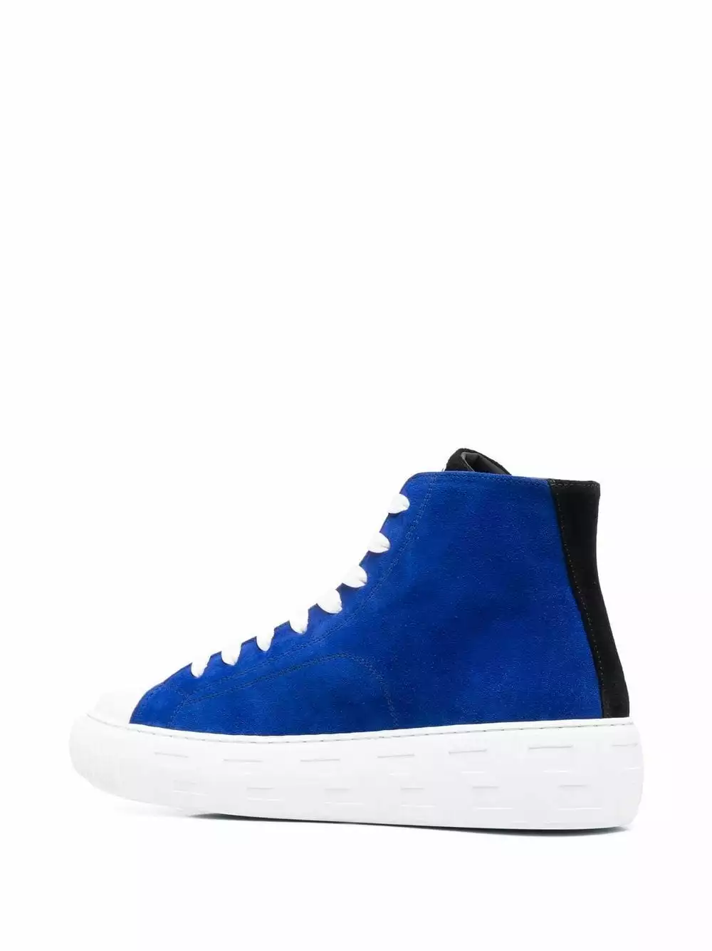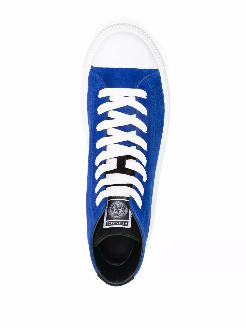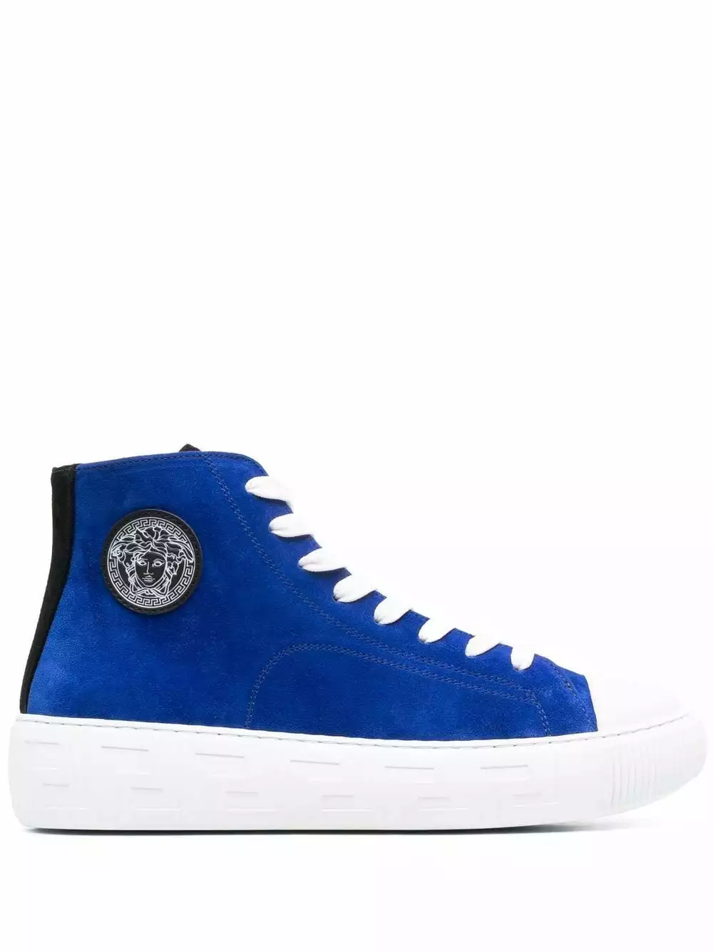Versace’s Greca high-top sneakers celebrate the brand’s key motif. Crafted in Italy, this everyday pair sits atop a chunky rubber outsole embossed with a Grecca trim and features a round Medusa logo patch to one side.