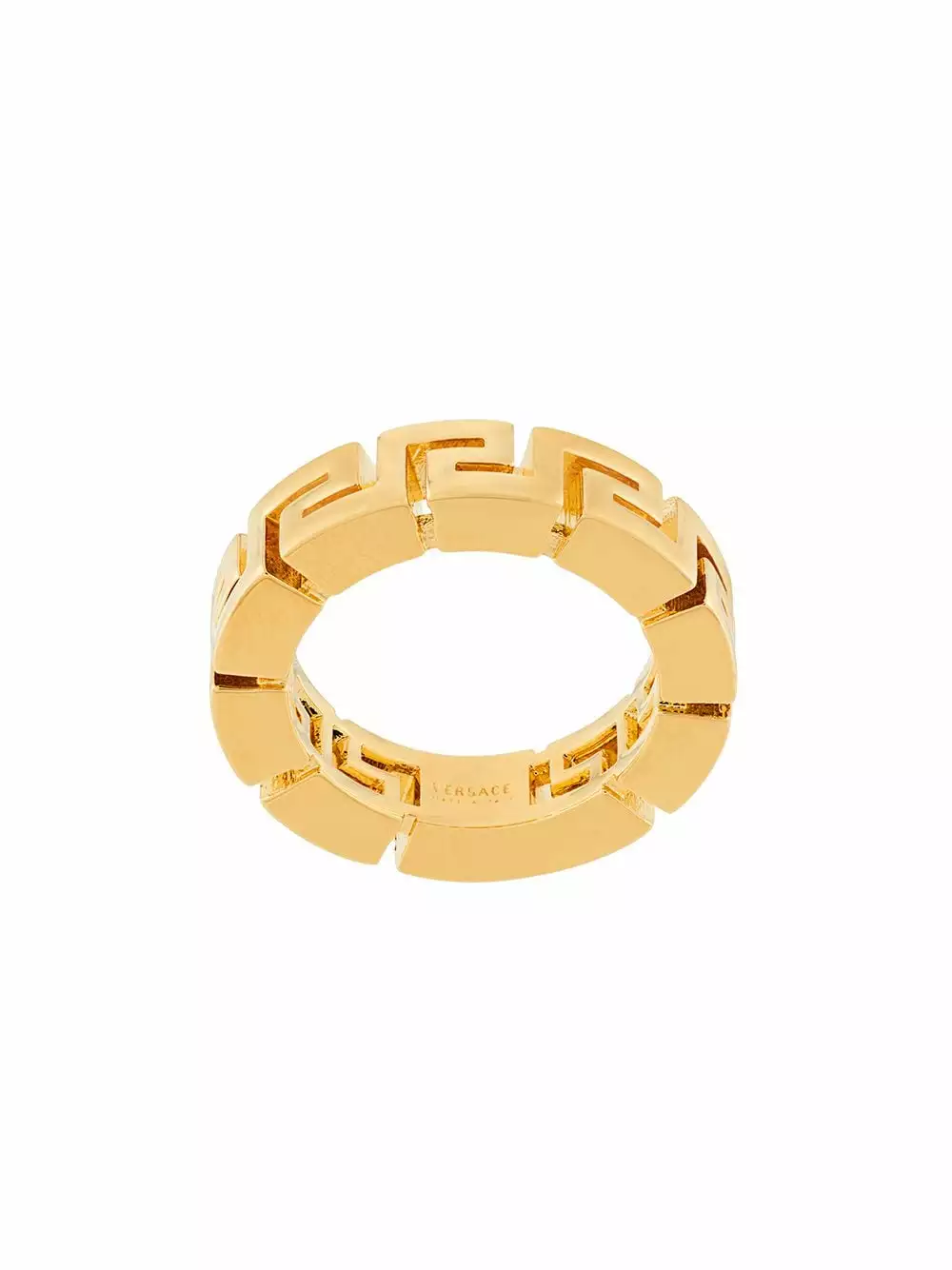 Go for gold. Why settle for anything less? This is exactly why you should reward yourself with this gold-tone brass Greca motif ring from Versace. Top champ. Featuring gold-tone hardware and engraved Greca motif.