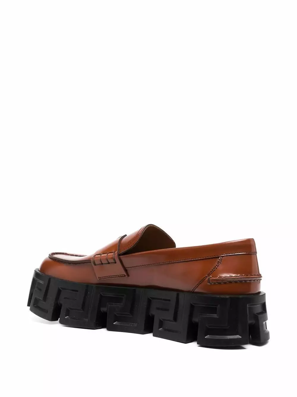 The Greca pattern was first used by Versace in 1988 and is now synonymous to the brand. Symbolising infinity and unity, it is showcased as three-dimensional detailing on this pair of loafers, as part of the ridged rubber sole. In a contrasting colourway it emphasises this bold silhouette and the distinct style of the brand.