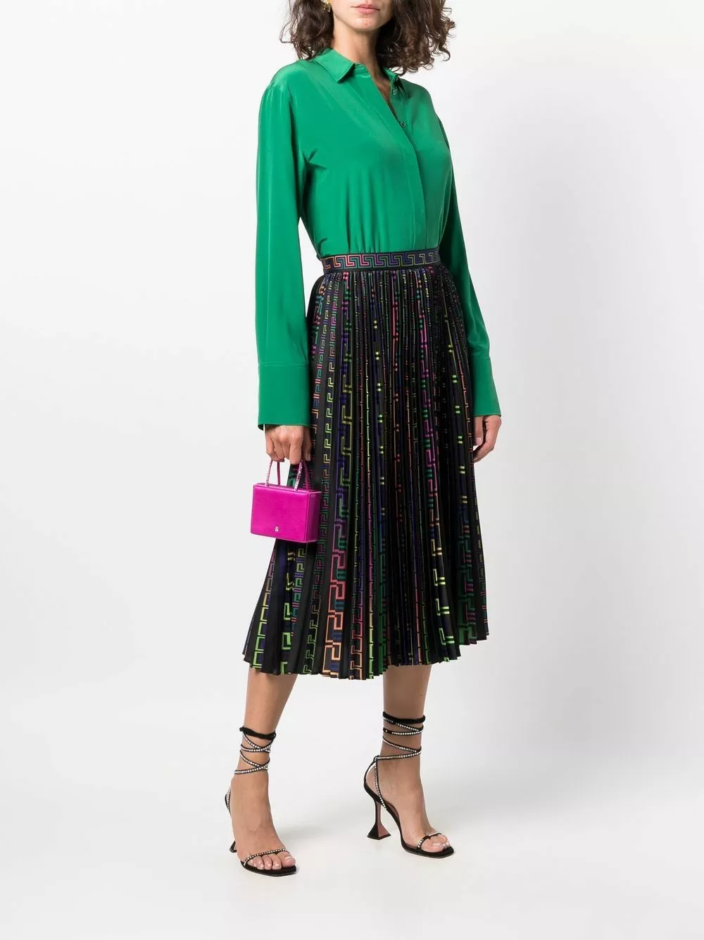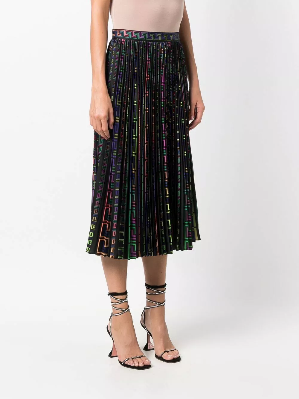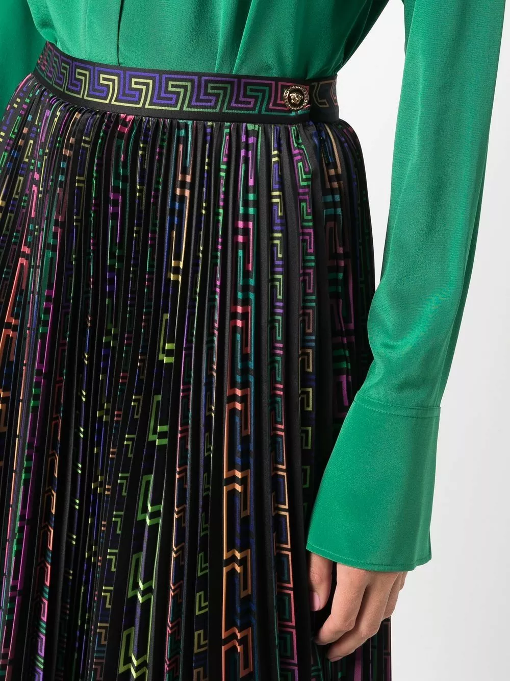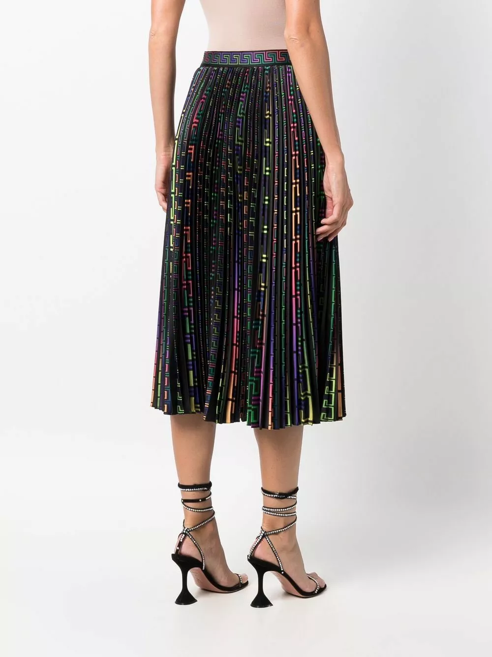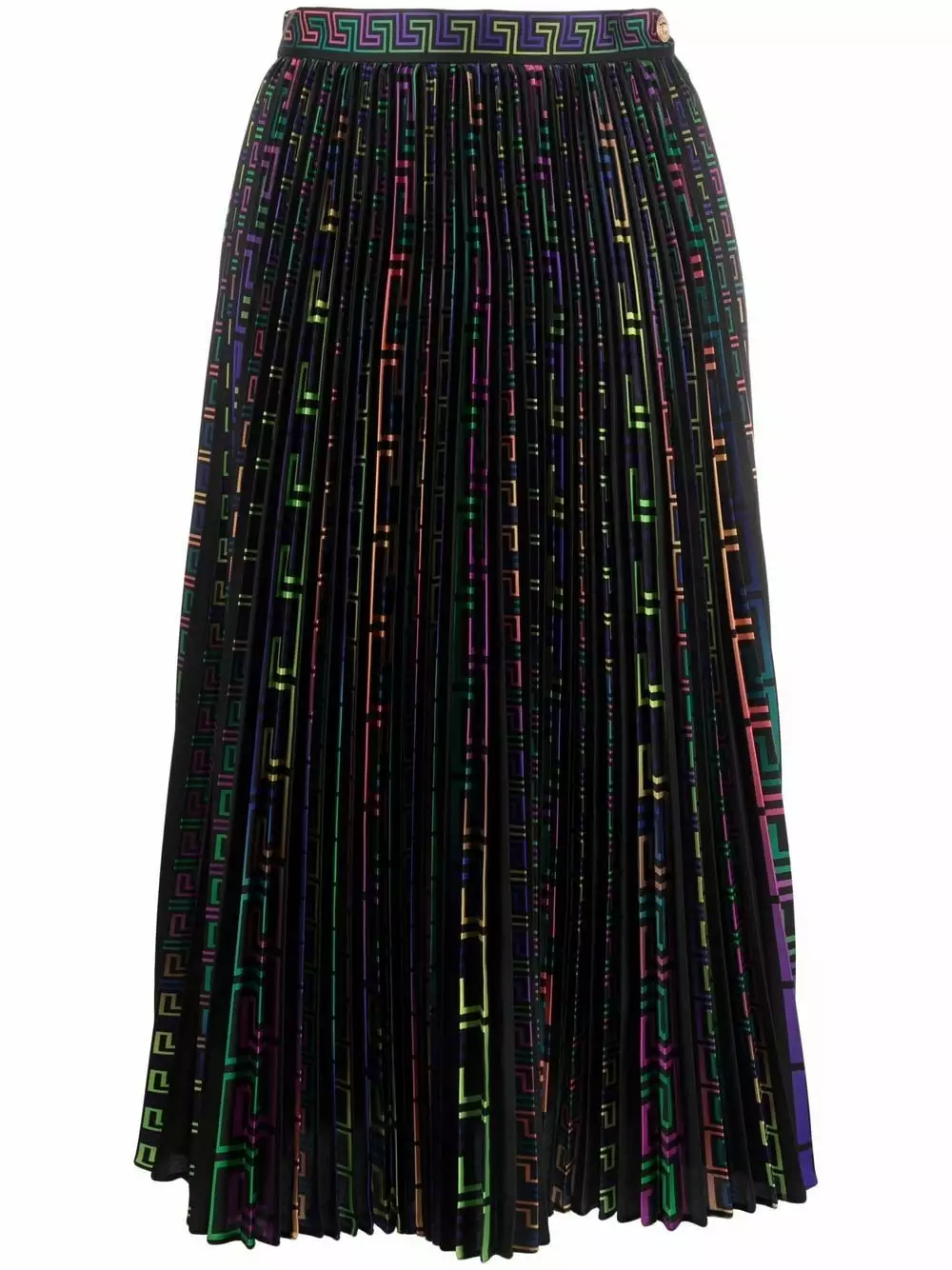A heritage Versace design, the Greca pattern is given a contemporary feel thanks to a multicolour design here. This offers an eye-catching contrast to the skirt’s classic pleated silhouette.