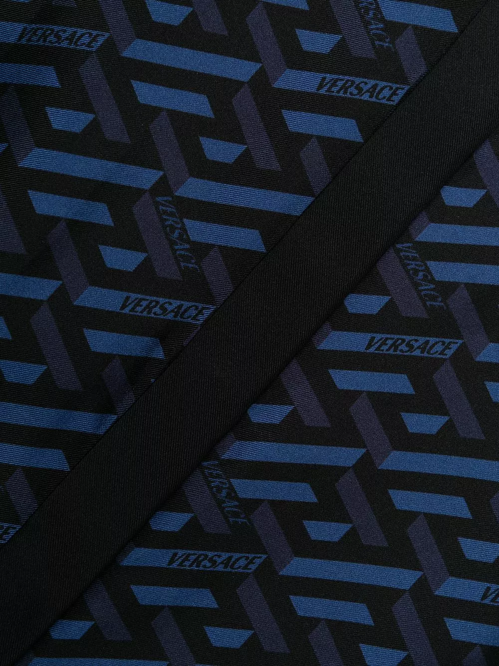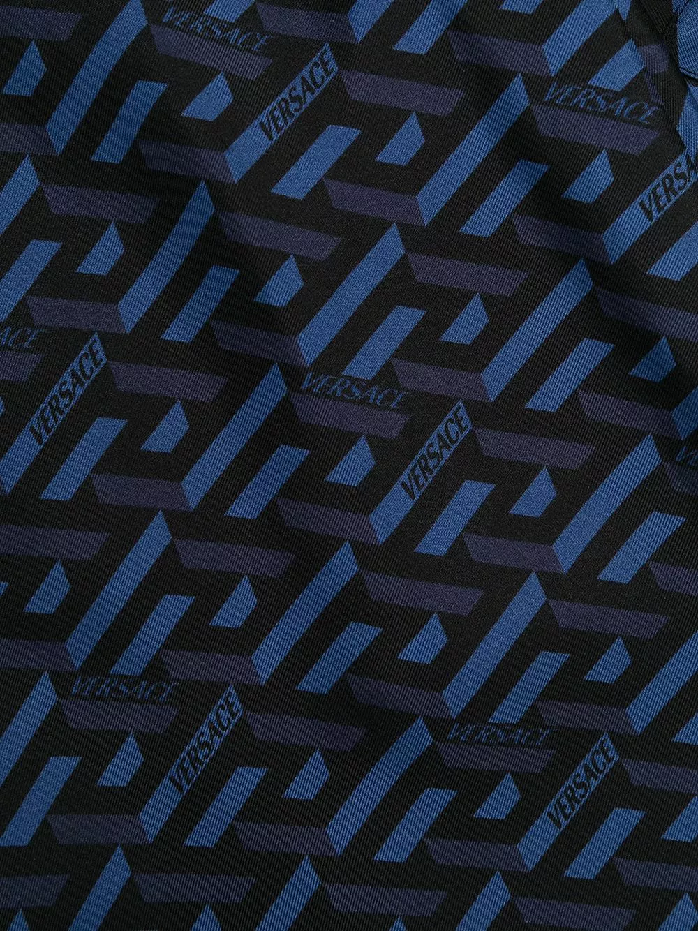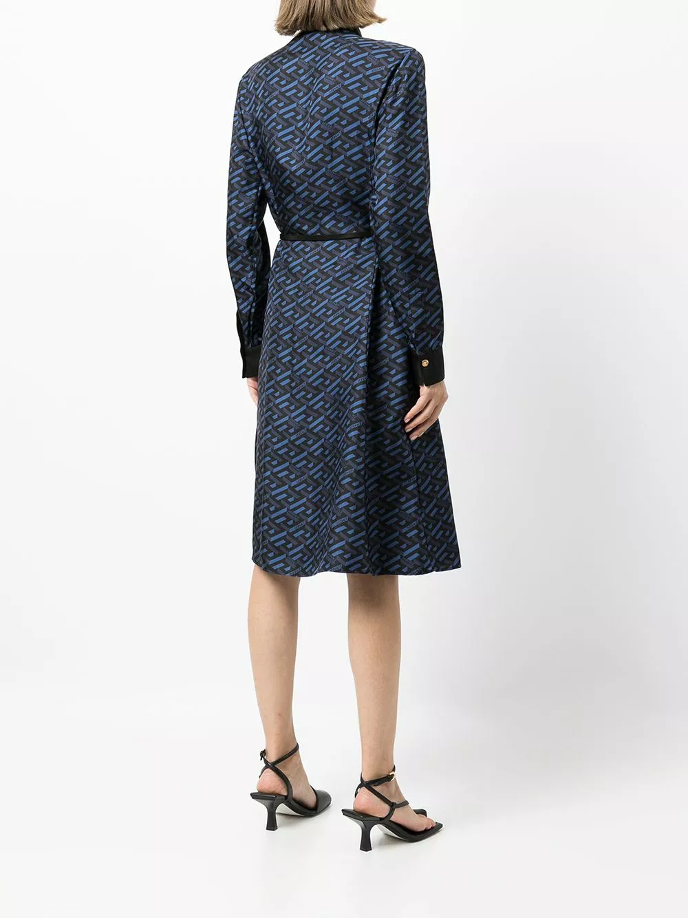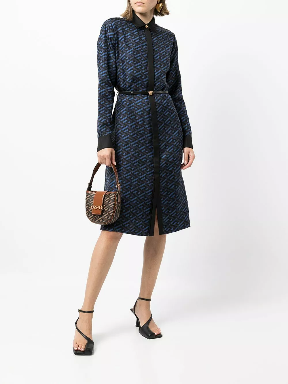 Homaging Versace’s heritage, this shirtdress boasts two of the label’s most iconic motifs. Printed with a 3D-effect version of the brand’s famed Greca motif, the accessory is completed with a gold-tone Medusa Head buckle detail.