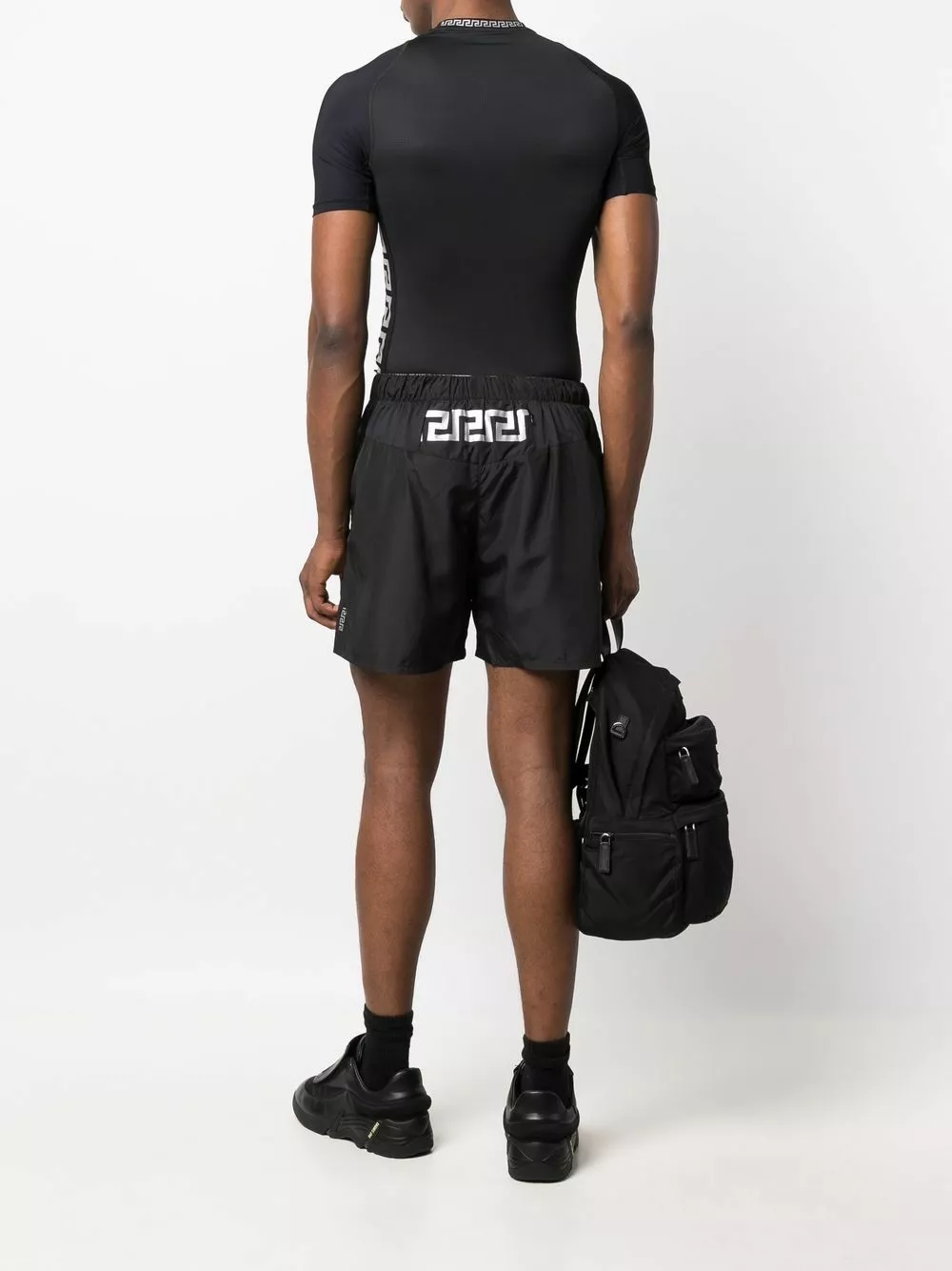 Versace’s black shorts honour the Greca key motif, one of the brand’s most recognisable emblems – here it features at the back in a contrasting white print that accentuates it all the more.