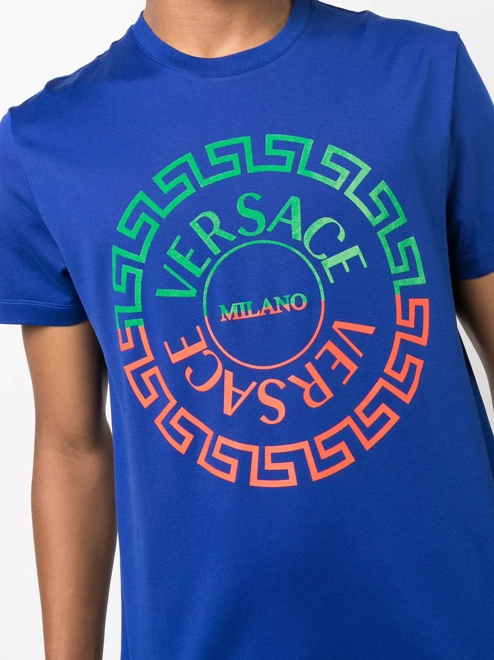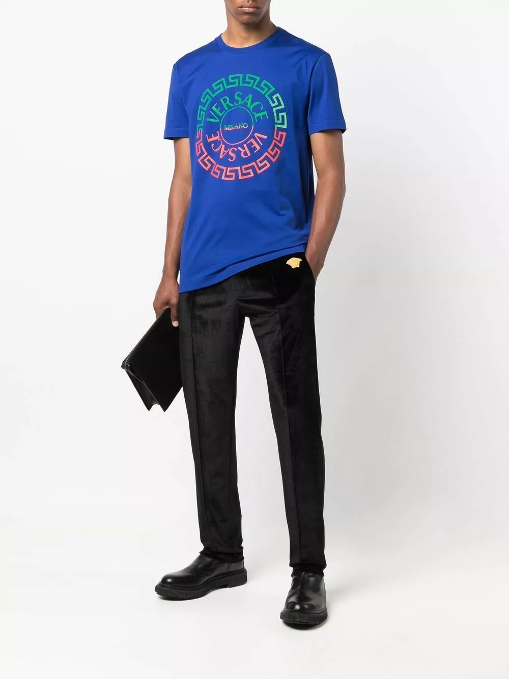 Framed by the brand’s iconic Greca motif, Versace’s logo makes a colourful appearance to the front of this blue-hued T-shirt. This crew-neck design has been constructed from soft cotton, merging comfort and typical Italian refinement into one.