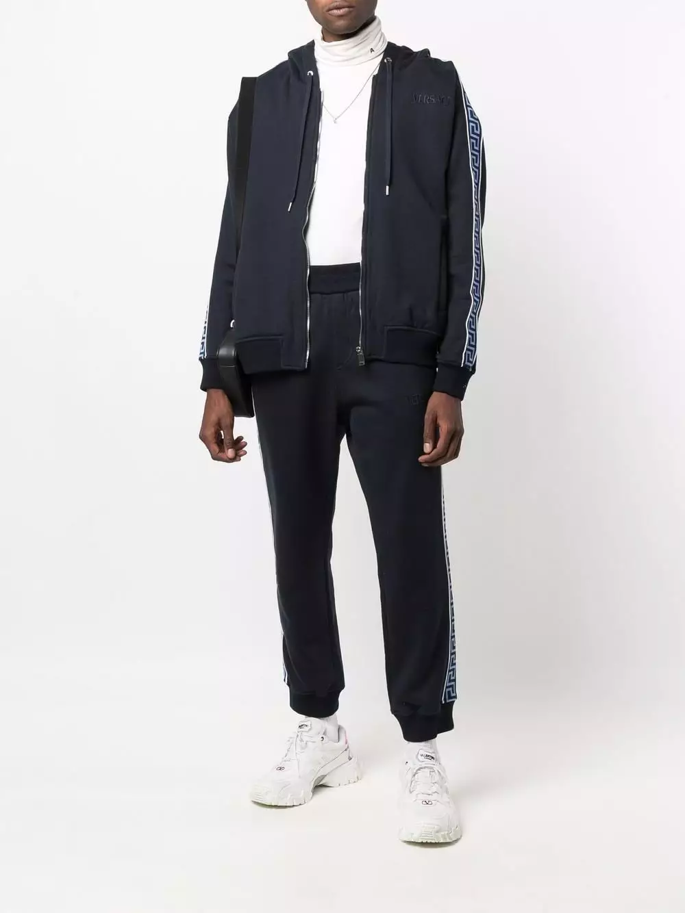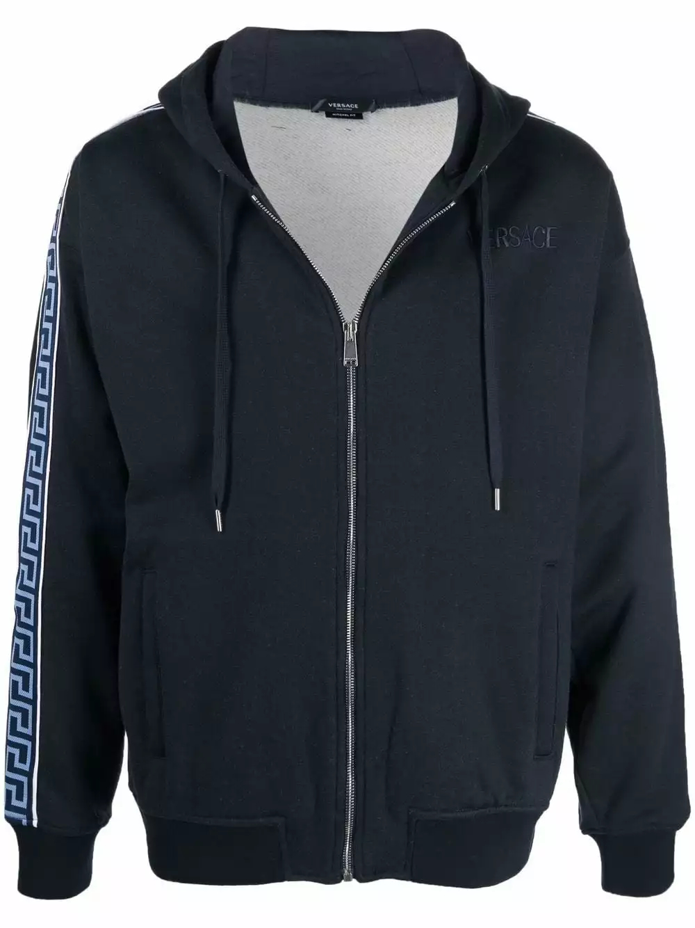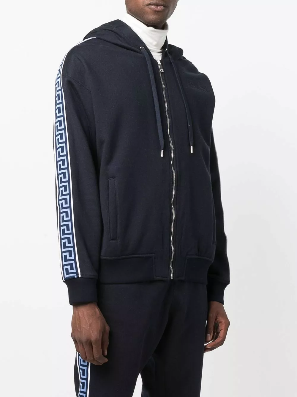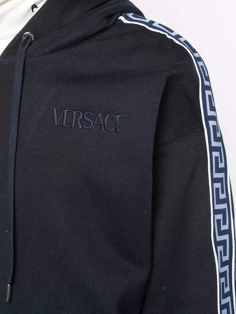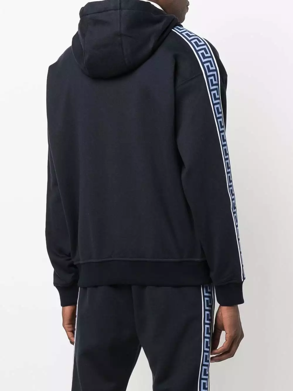 Paying homage to Versace’s heritage, the brand’s signature Greca pattern is printed onto this blue sweatshirt. Inspired by Greek mythology, the geometric motif has become a label signature for over a decade.