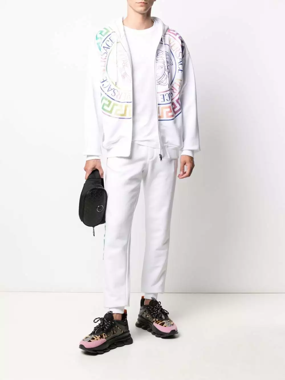 Versace’s iconic Greca pattern receives a metallic twist. Crafted from cotton, these track pants are adorned with an iteration of the Atelier’s motif in gleaming gold.
