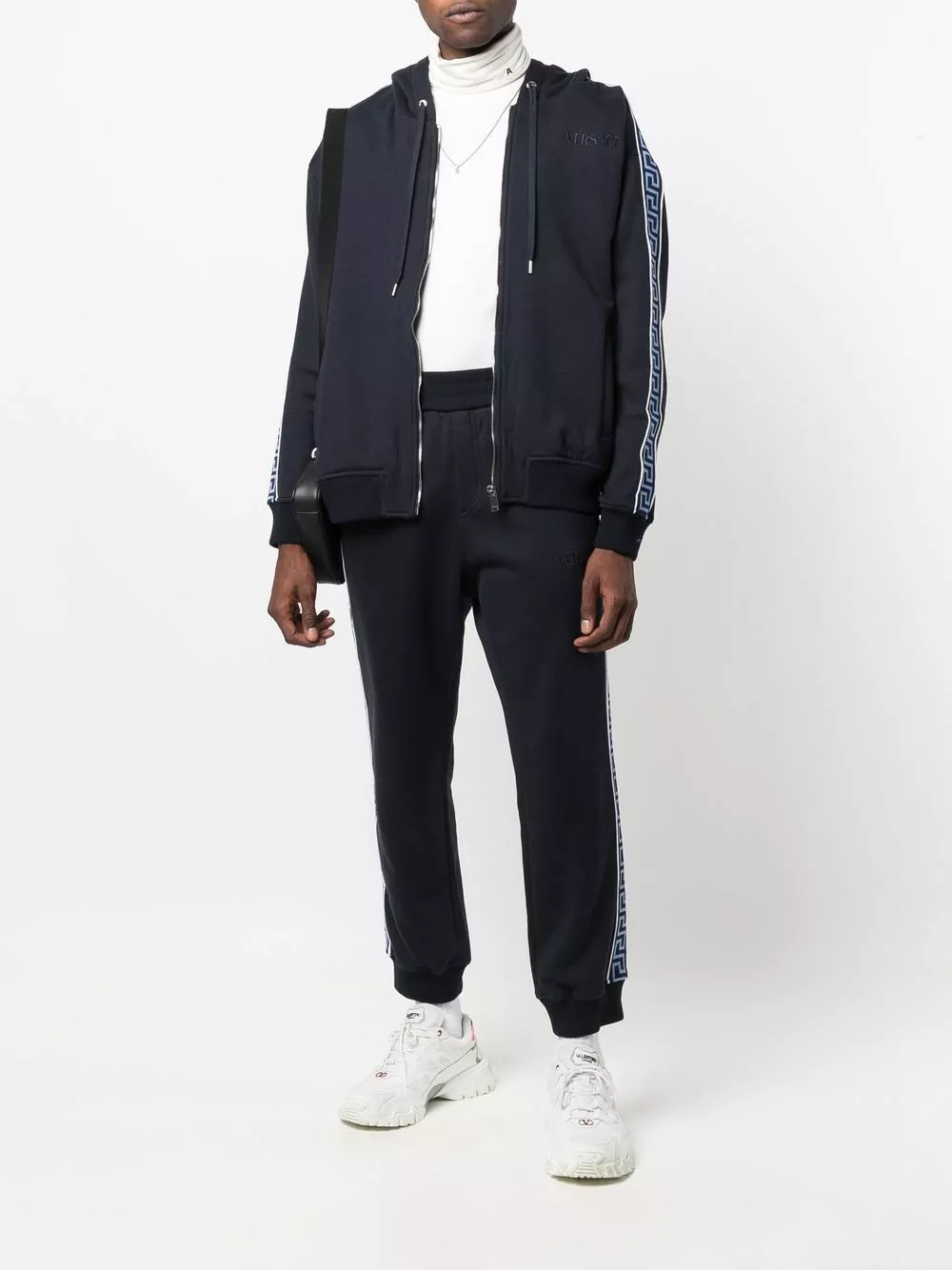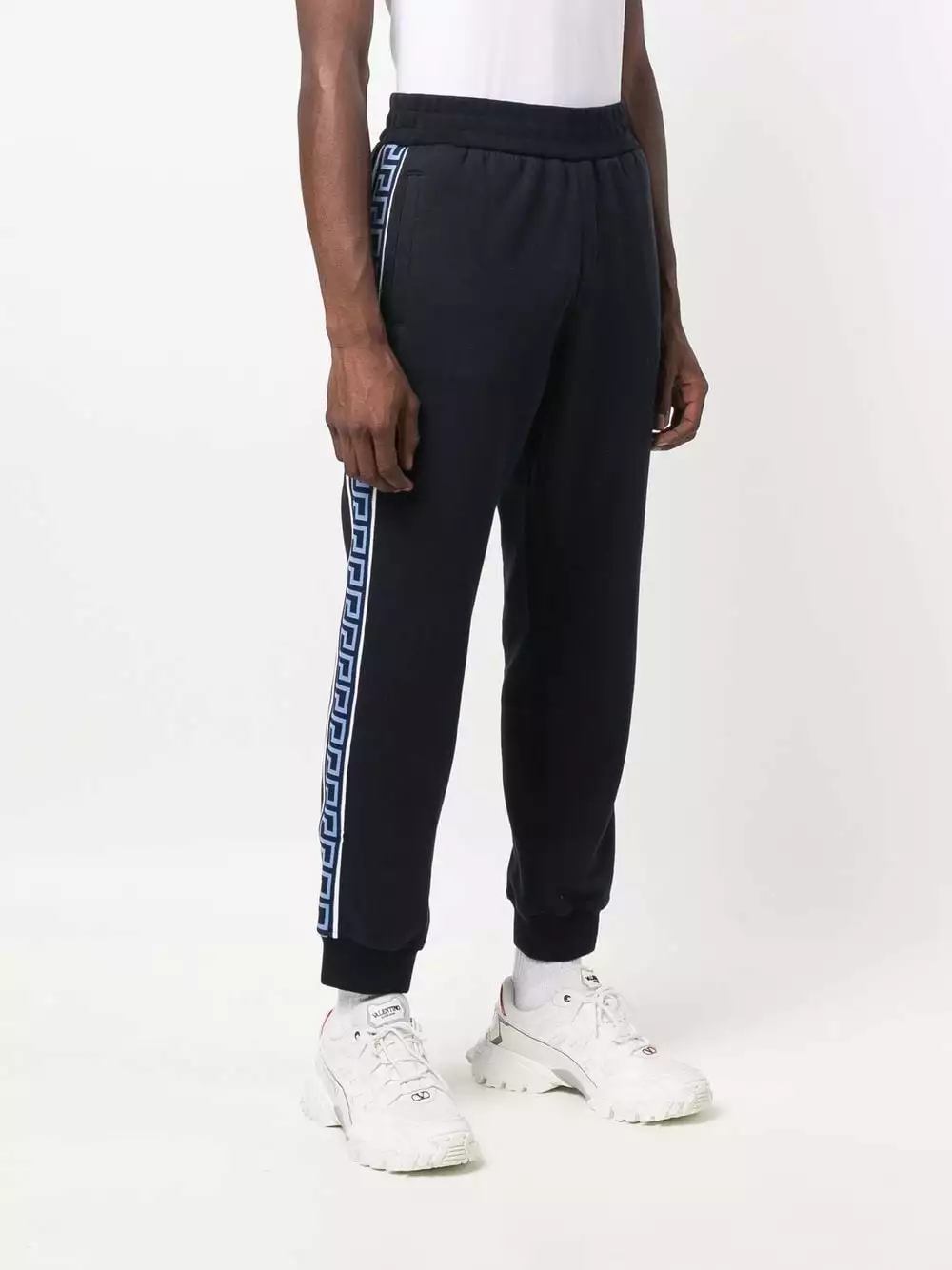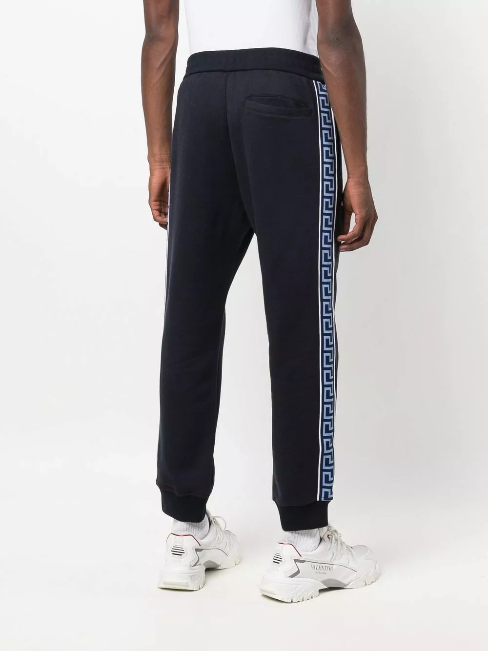 Paying homage to Versace’s heritage, the brand’s signature Greca pattern is printed onto the sides of these navy trackpants. Inspired by Greek mythology, the geometric motif has become a label signature for over a decade.