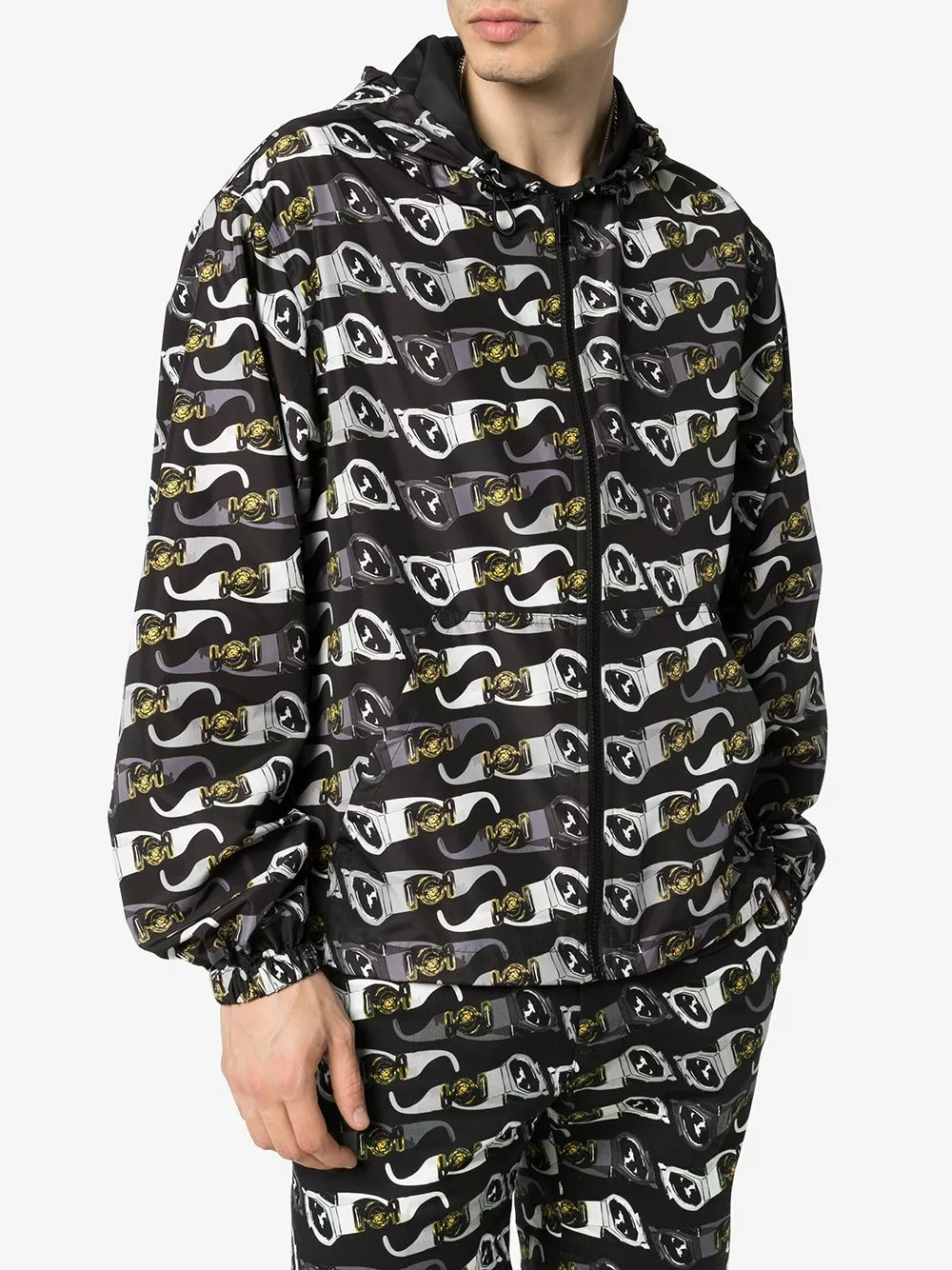 Get on board with Versace’s ‘more is more’ philosophy. It’s emblazoned with a motif of the brand’s sunglasses that are sure to get you noticed when you’re out and about. It’s not for wallflowers. Featuring a drawstring hood, a front zip fastening and elasticated cuffs.