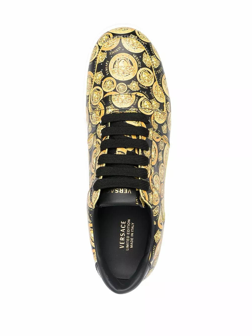 Elevate your style one step at the time with a little help from Versace. Boasting the signature Medusa print, with these leather sneakers you won’t go out of sight. Sporty yet smart.