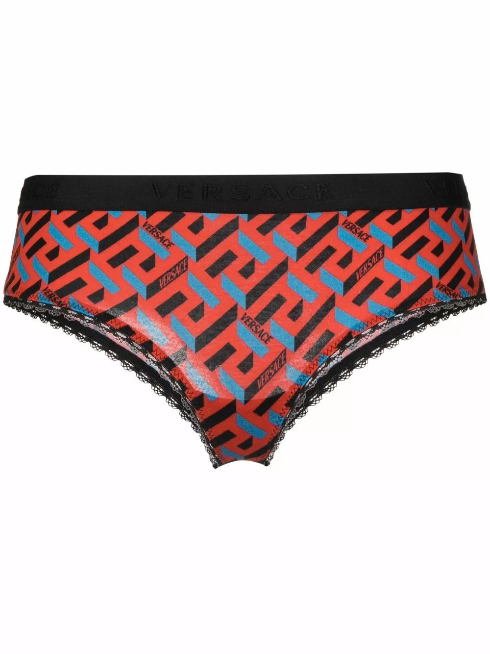 Versace’s bright red and blue briefs feature the brand’s graphic La Greca motif. An update on the brand’s Greek Key motif, it’s woven onto the stretch-cotton fabric.