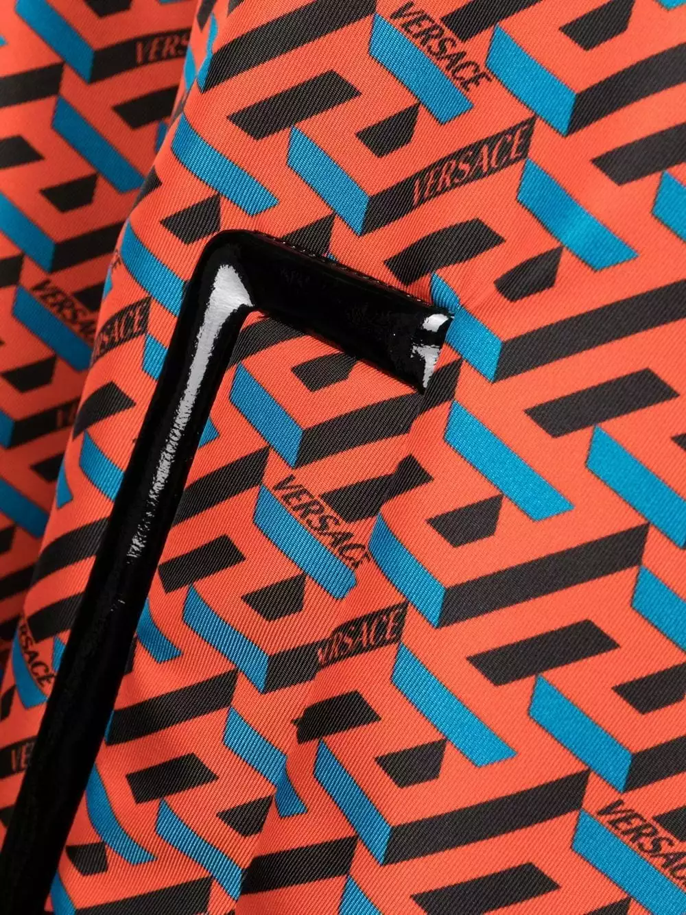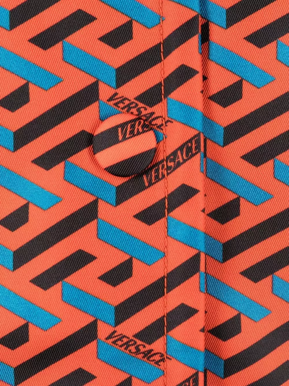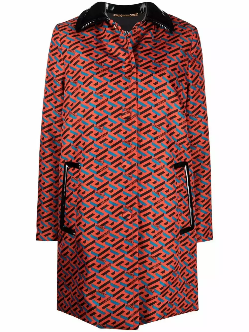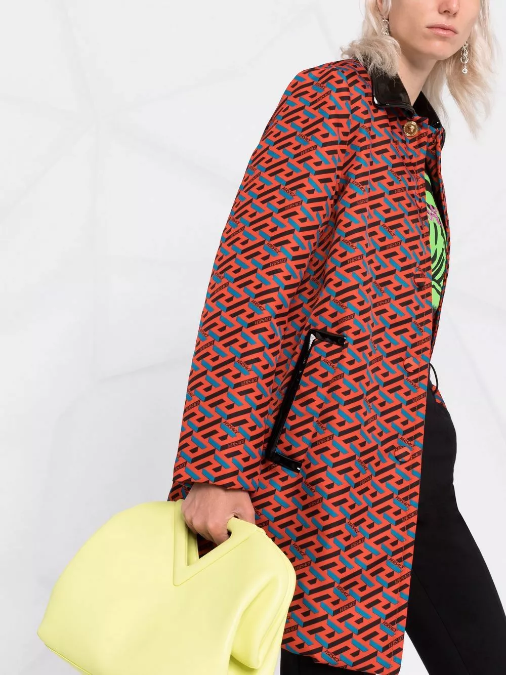 Bold design and expertly done tailoring can both be found from the Versace label, and this La Greca pattern overcoat is a testament to that this Autumn Winter 2021. Sporting a striking orange, blue and black design, this outerwear is finished with a glossy black collar and side pockets.