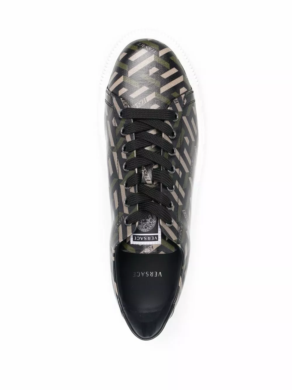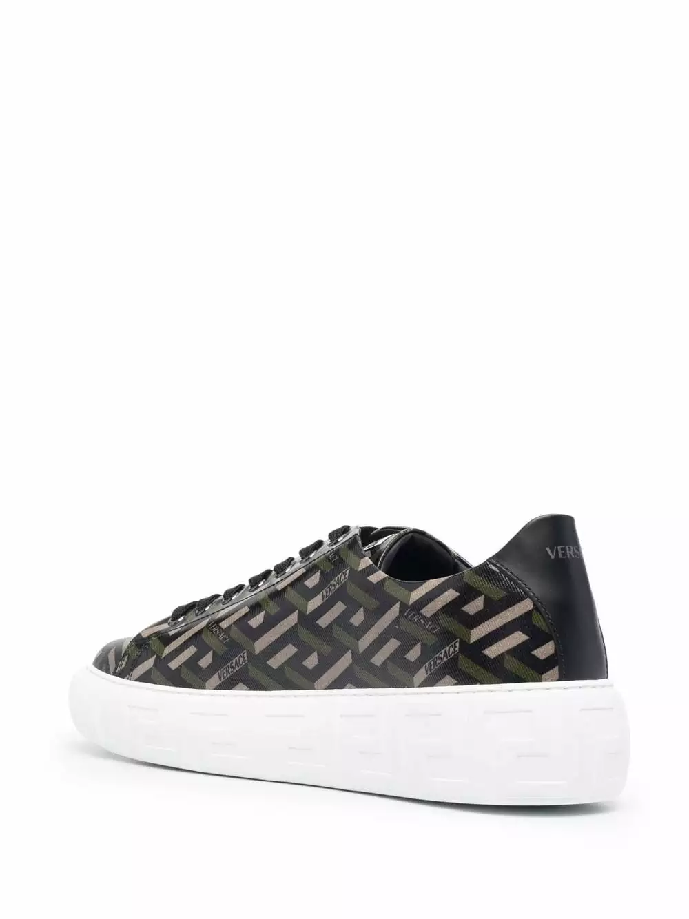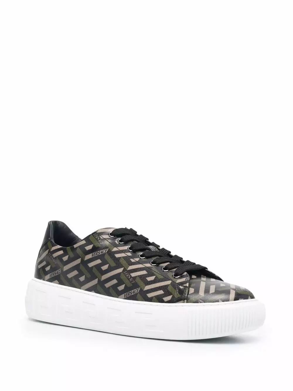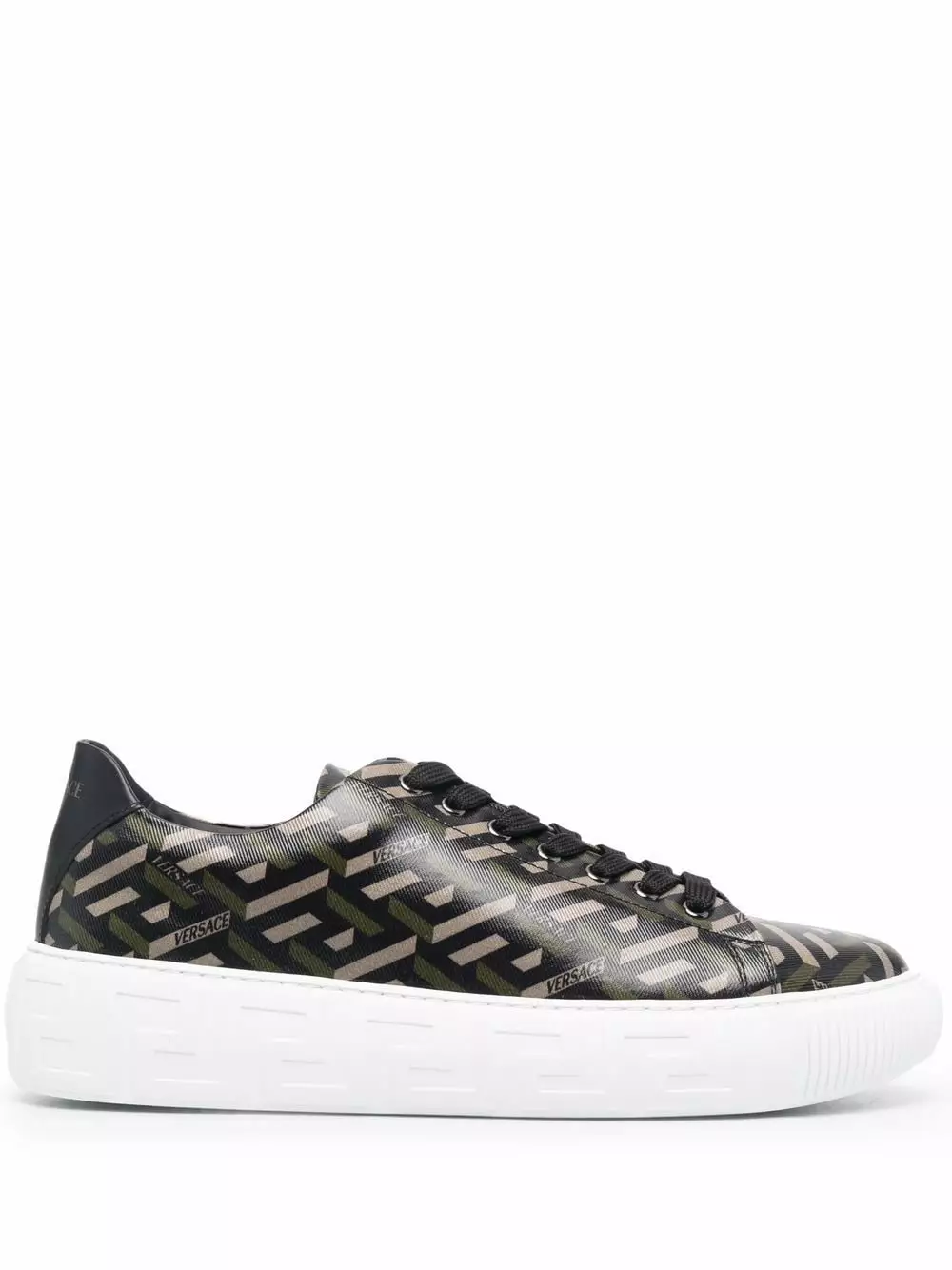 A key house motif, Versace’s La Greca print appears as an all-over design on the upper of these sneakers. The low-top silhouette is supported by a chunky rubber sole for a contemporary look.