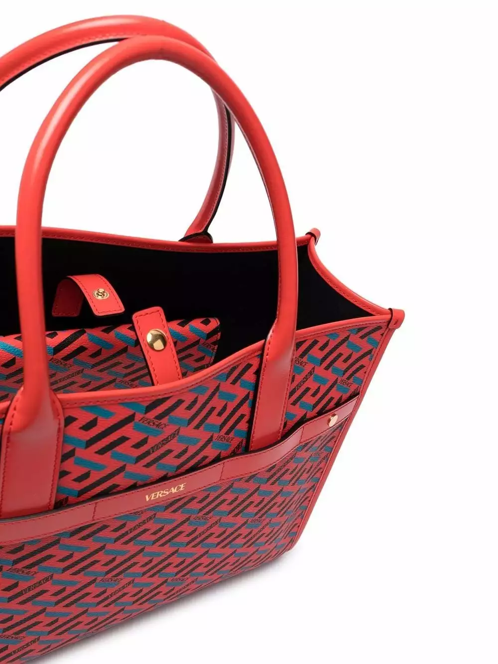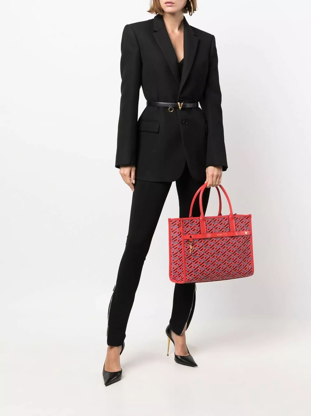Inspired by Ancient Greek pottery, Versace’s Greca Key pattern is a key indicator for the brand, reimagined for AW21 with a 3D effect. Presented in a red colourway, the historical print decorates this tote bag.