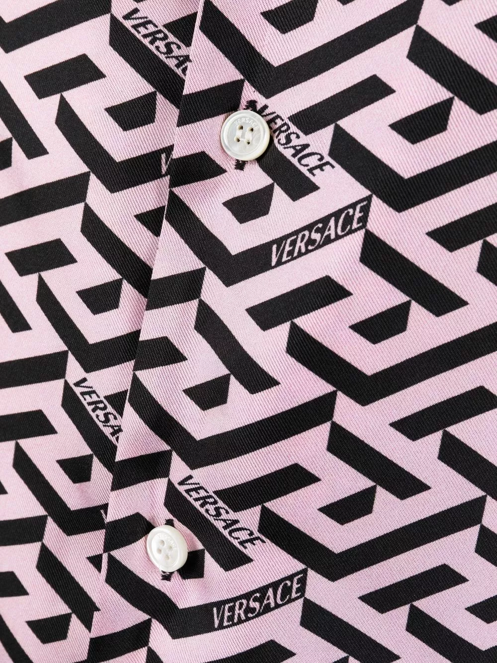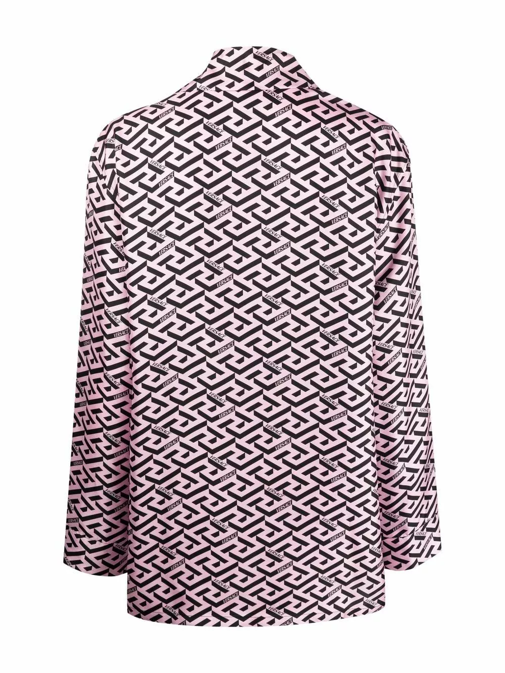 This Versace pyjama shirt is crafted in a silk construction and detailed with the brand’s signature La Greca pattern in an all-over black and pink logo print.