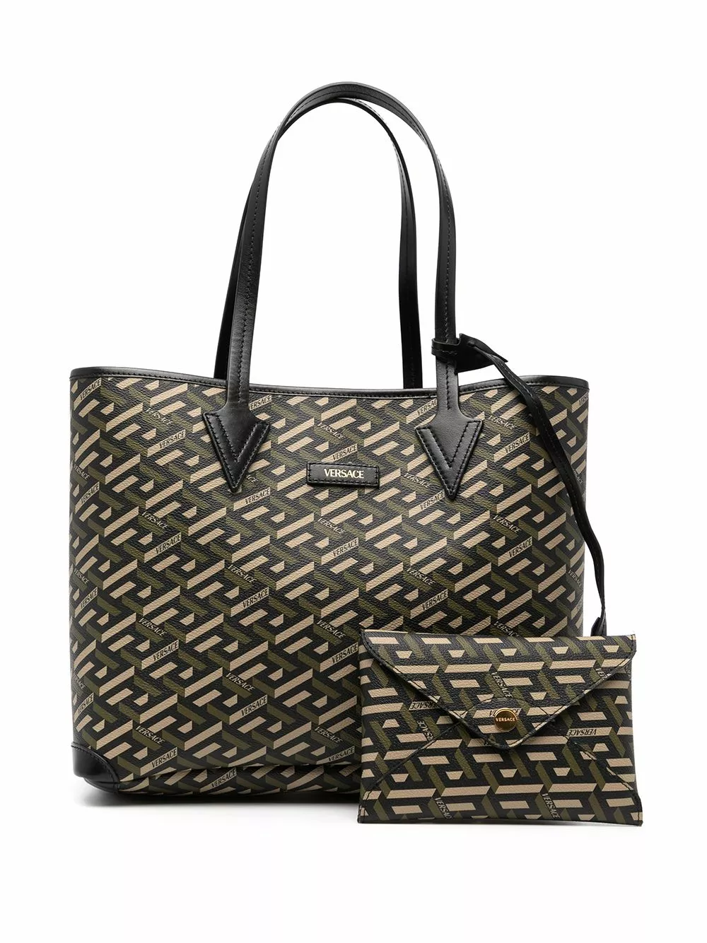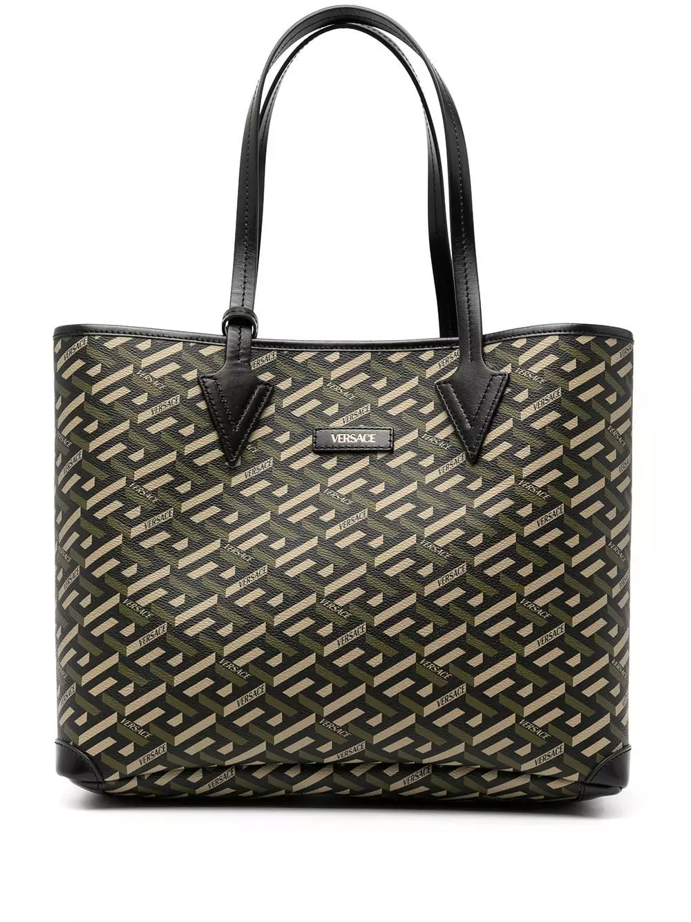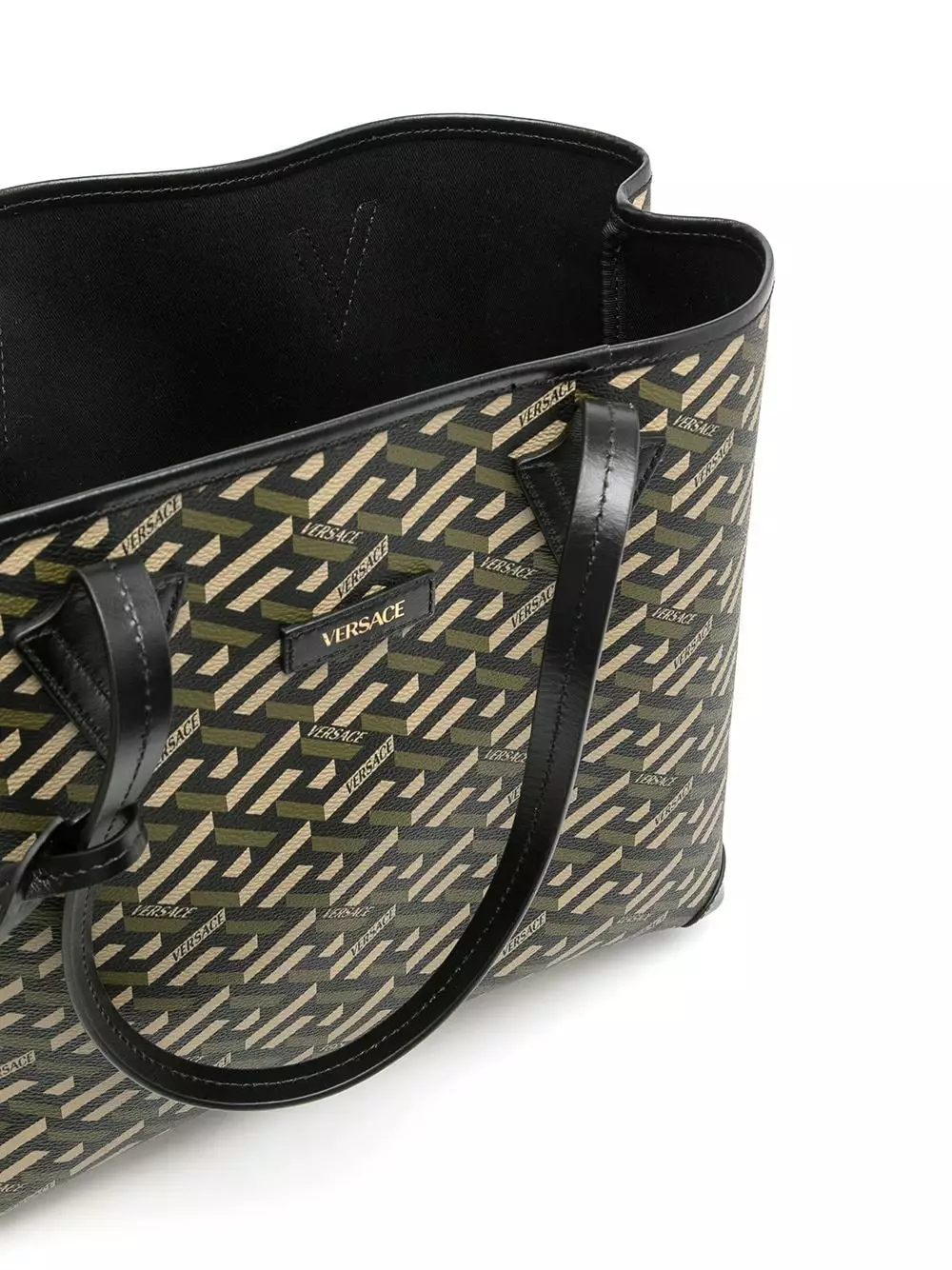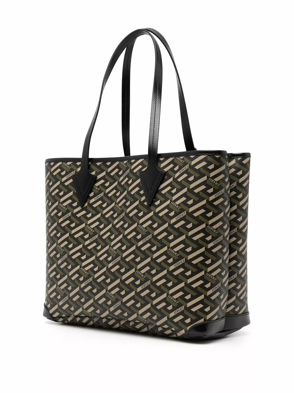 An unmistakable Versace symbol, the Greca motif is given a 3D-effect update for AW21. Seen in this tote bag, the theme is complemented by a front logo patch for a branded finish.
