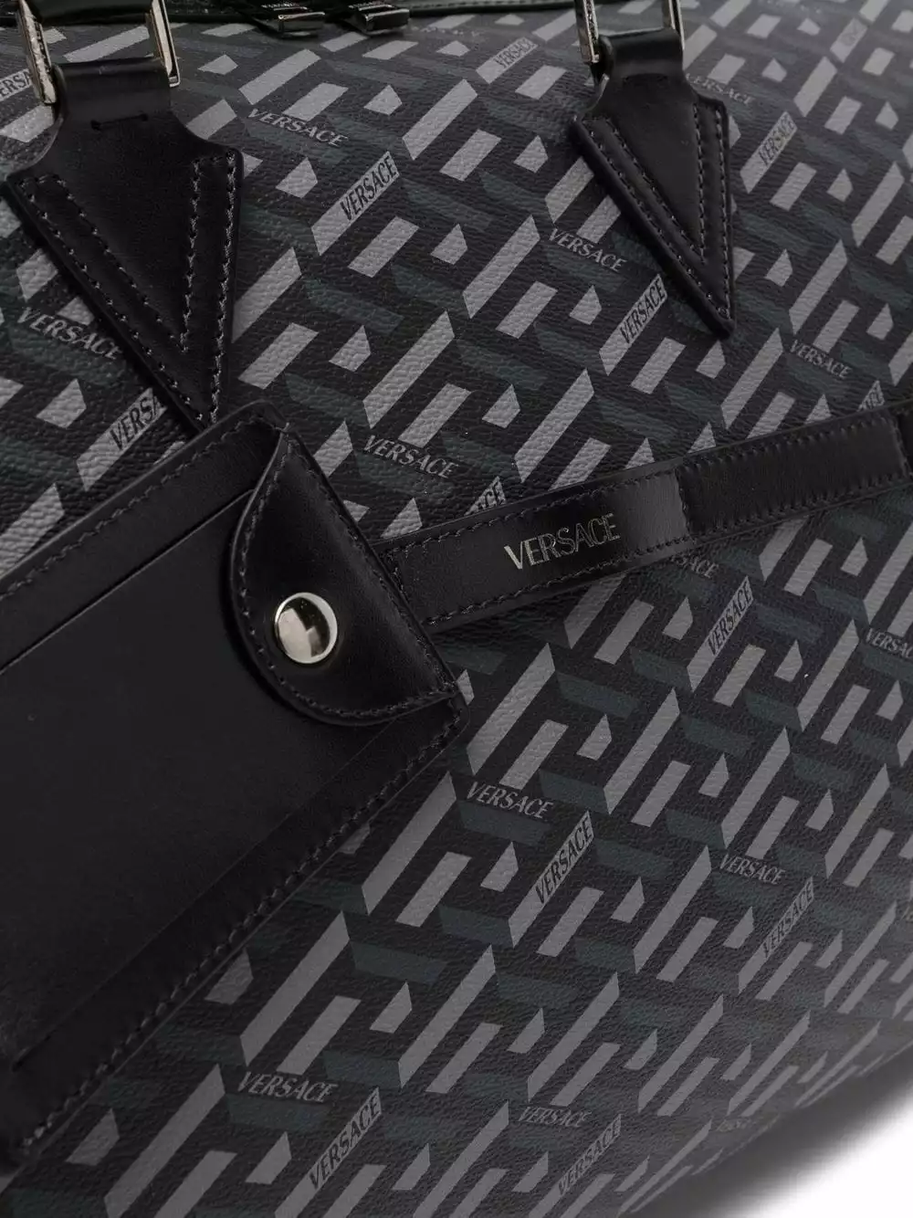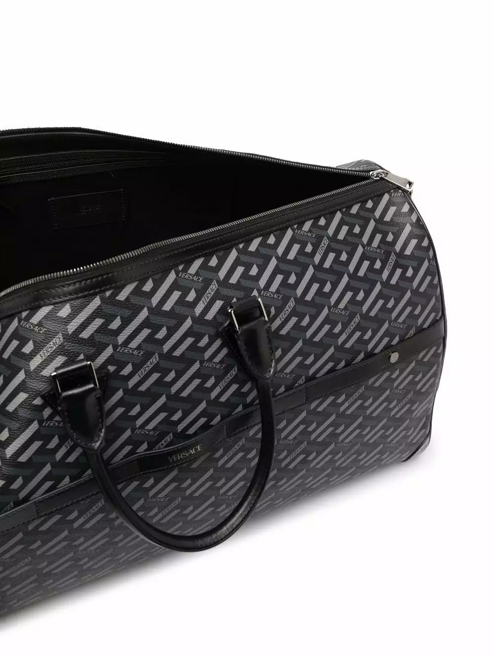 Versace’s graphic La Greca pattern has adorned many creations from the brand’s Autumn-Winter 2021 collection from ready-to-wear items to leather goods. This weekend bag sports the 3-D reminiscent pattern and is realised in an elegant muted grey and black colourway.