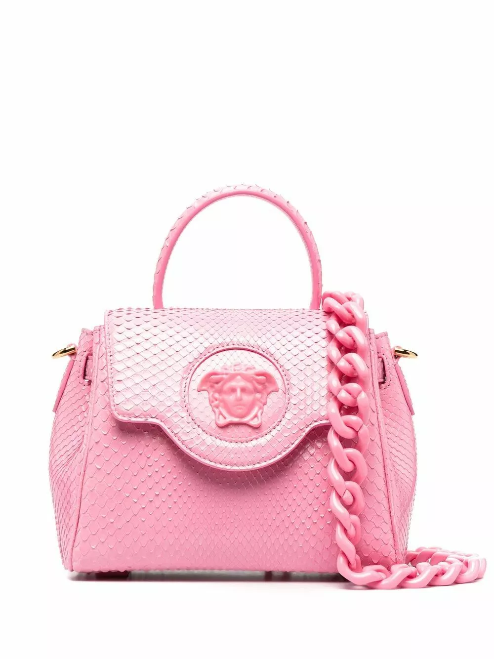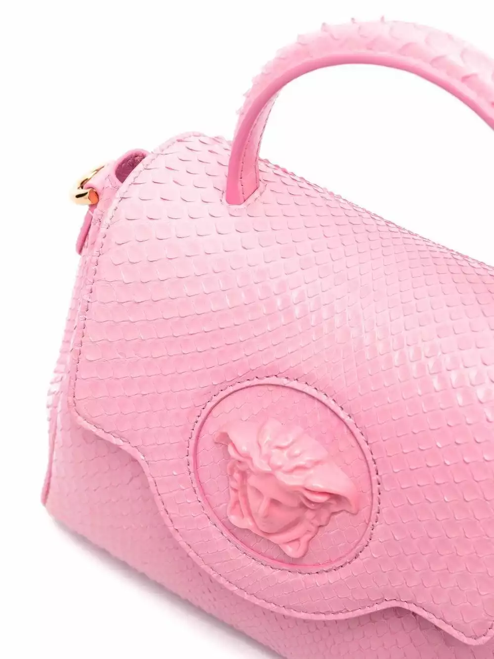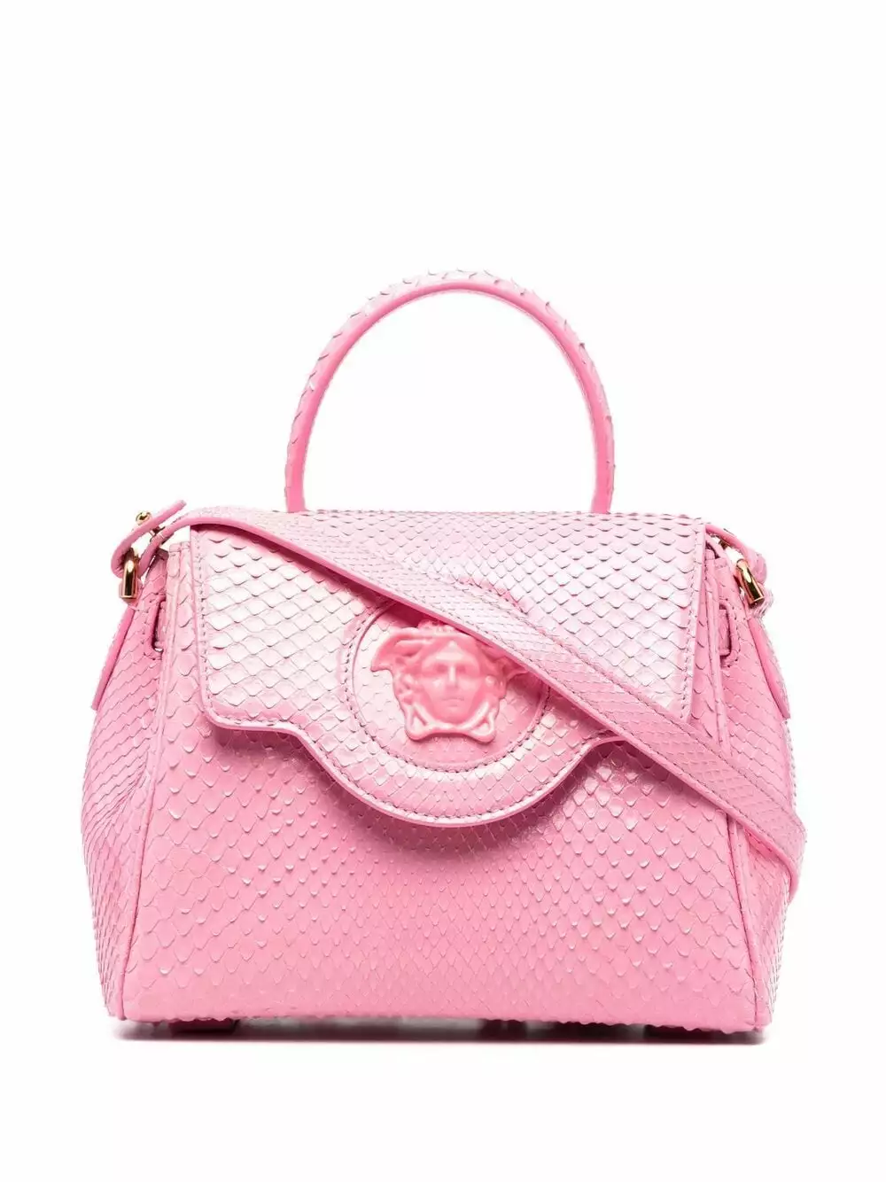Inspired by Greek mythology, Versace has turned Medusa into one of the most iconic symbols of all time that can be seen across every collection. Constructed from leather and boasting a snakeskin effect, this top handle bag is embellished with the signature Medusa head plaque, reflecting the brand’s timeless aesthetic.
