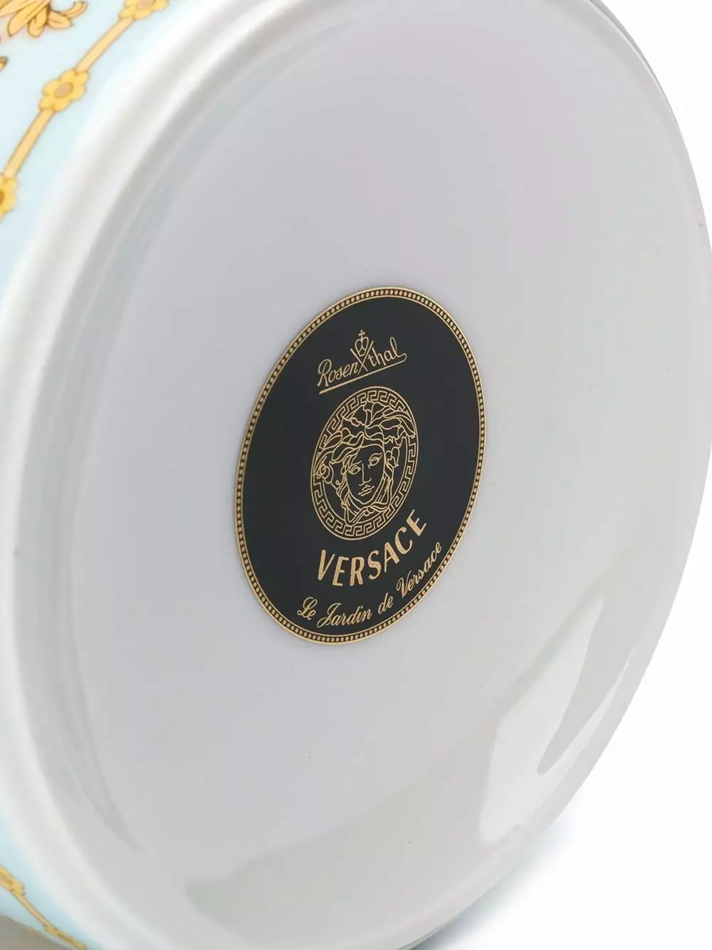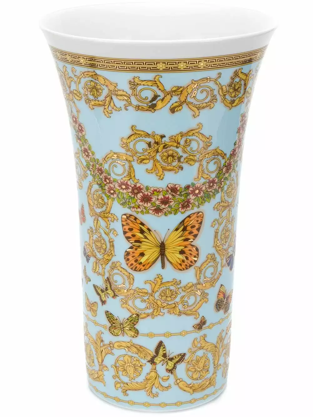 Blue porcelain Le Jardin De Versace vase from Versace Home featuring a baroque pattern and a floral pattern.