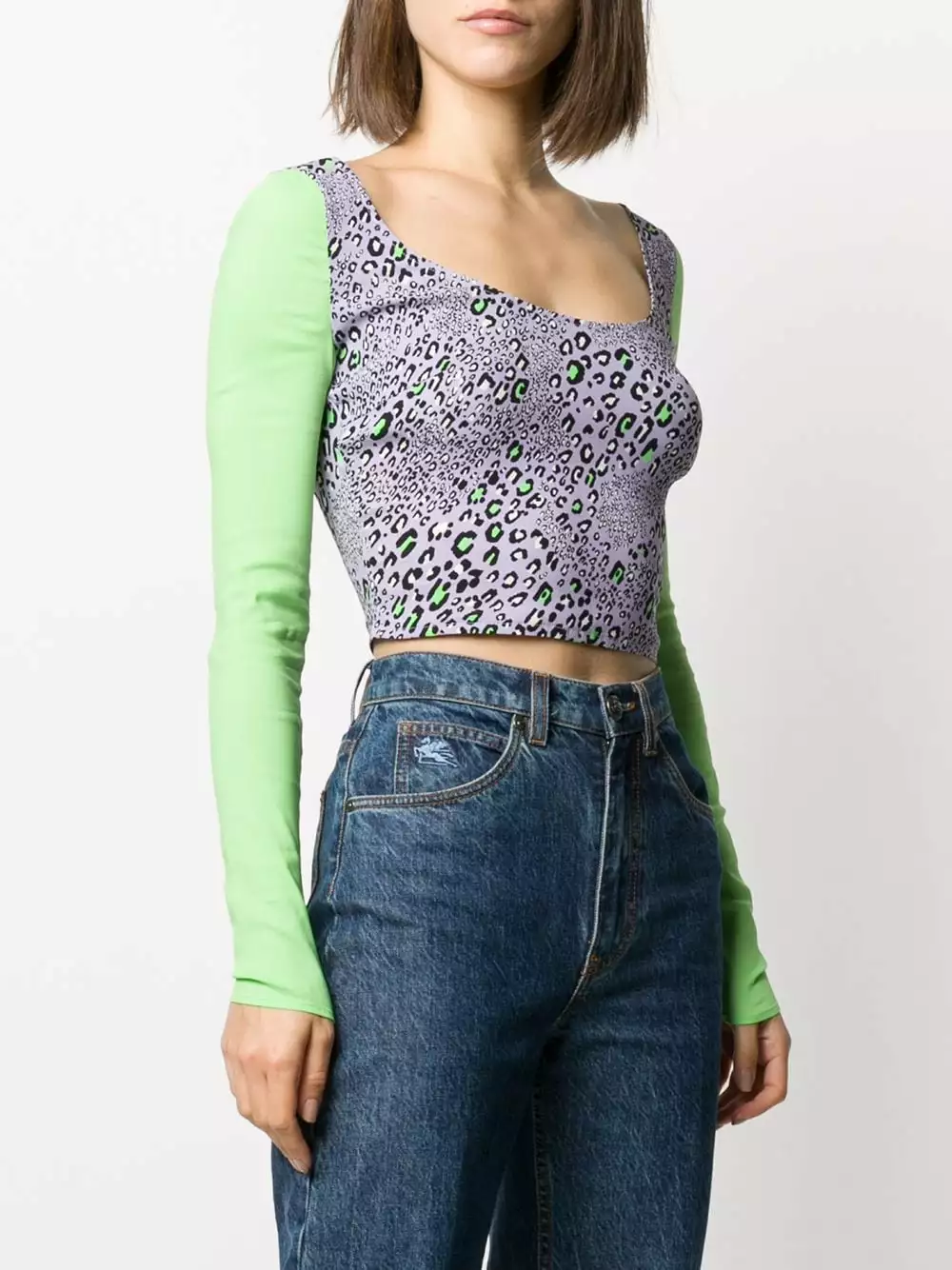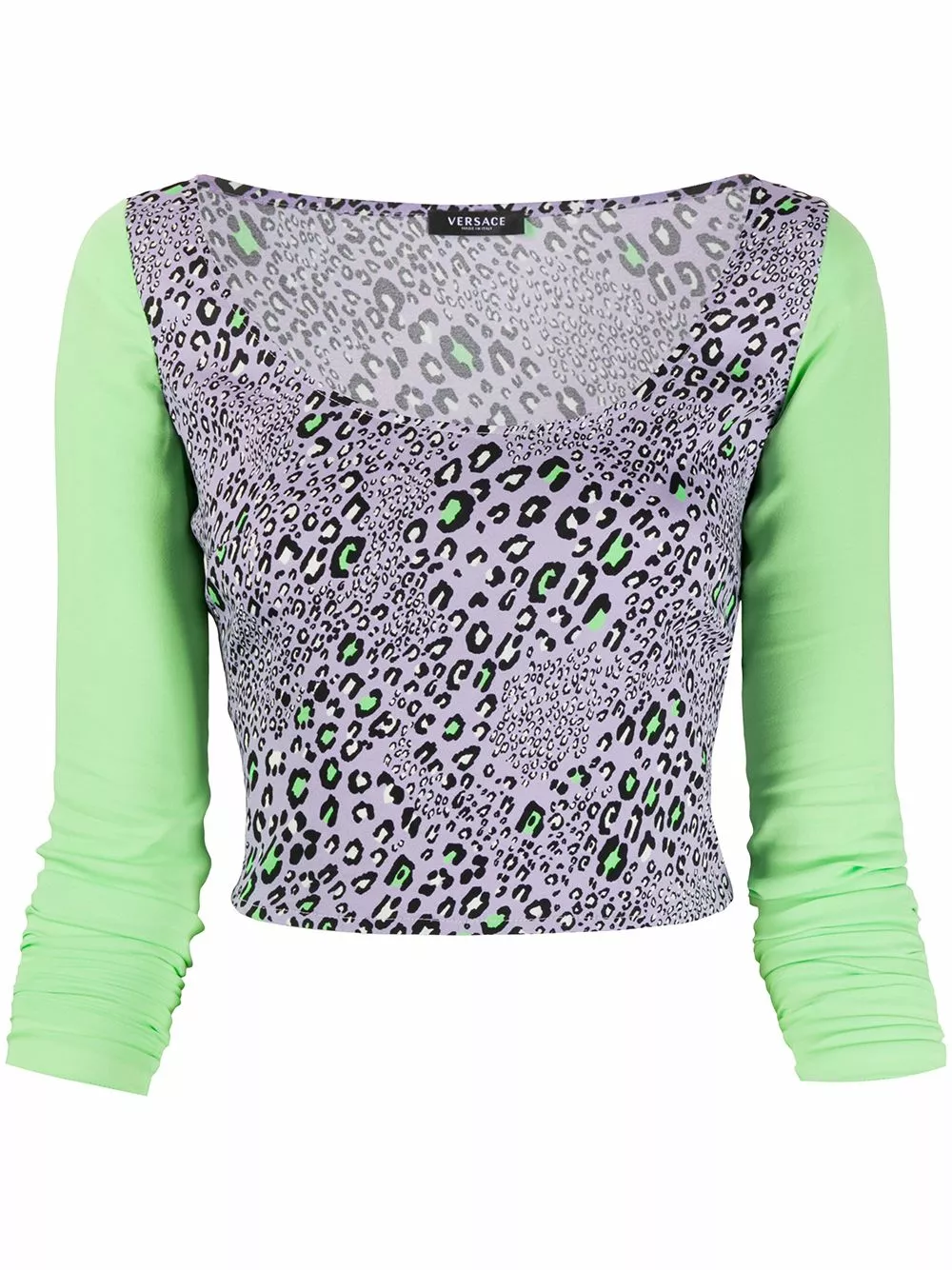 Feline fashion is in. Go wild in this ferocious leopard print crop top from Versace. Grrr.