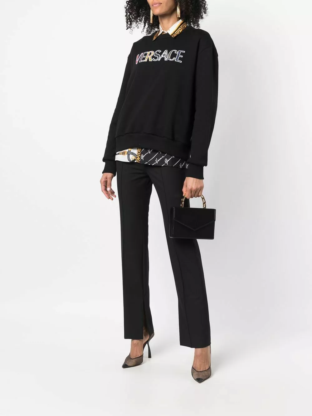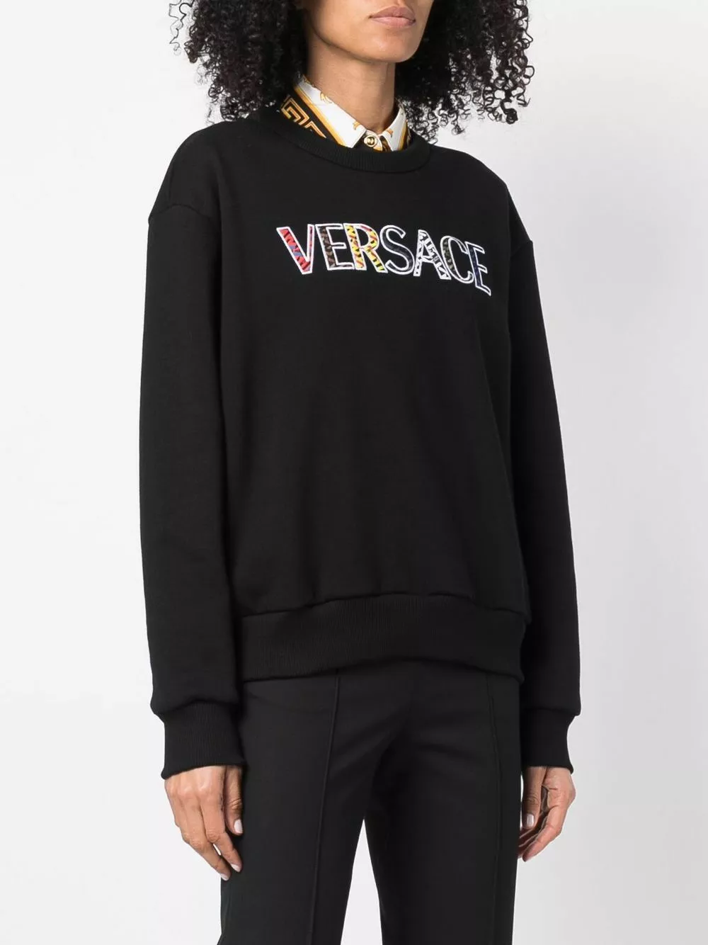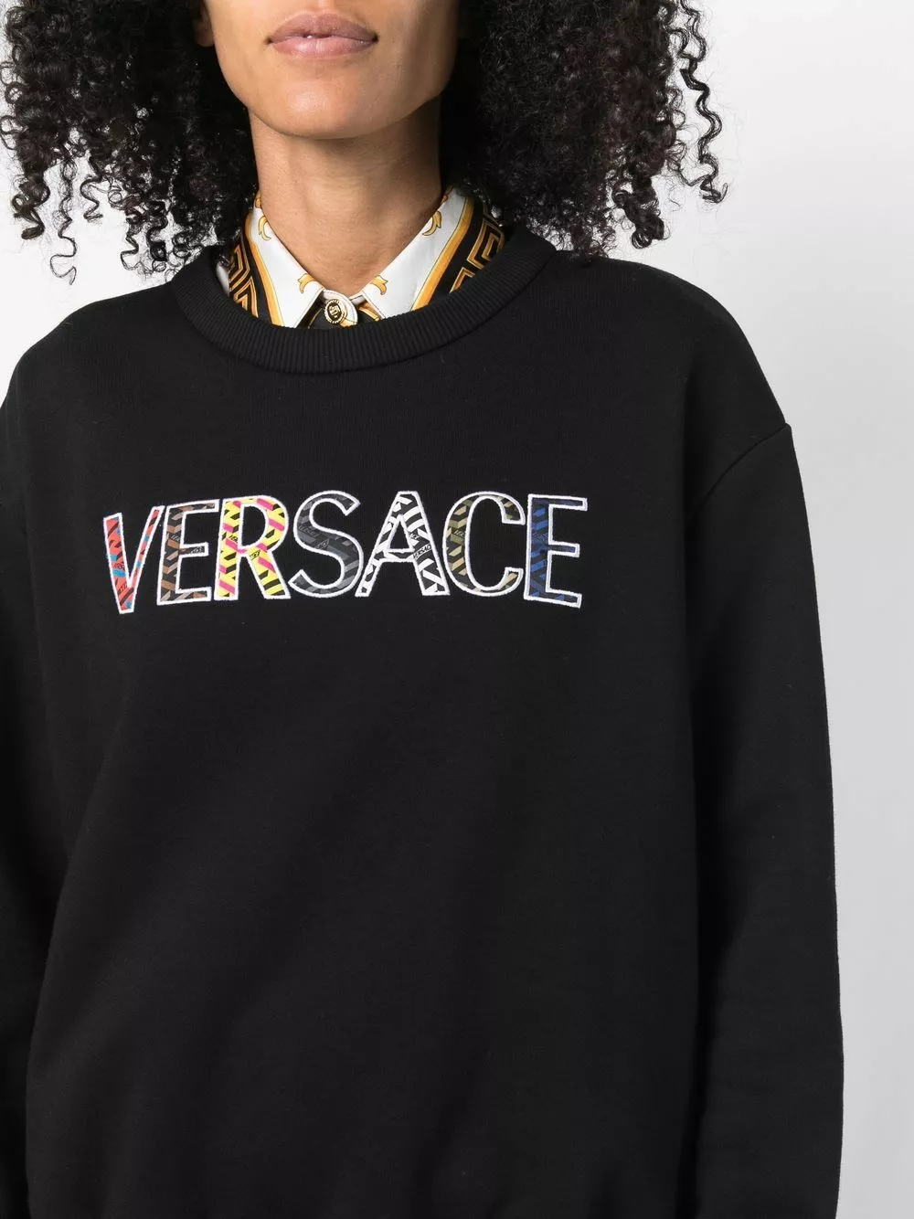 Versace moves away from their bold aesthetic with this sweatshirt. Crafted from black cotton it offers a more understated style, whilst colourful logo detailing speaks to the house’s creative approach.