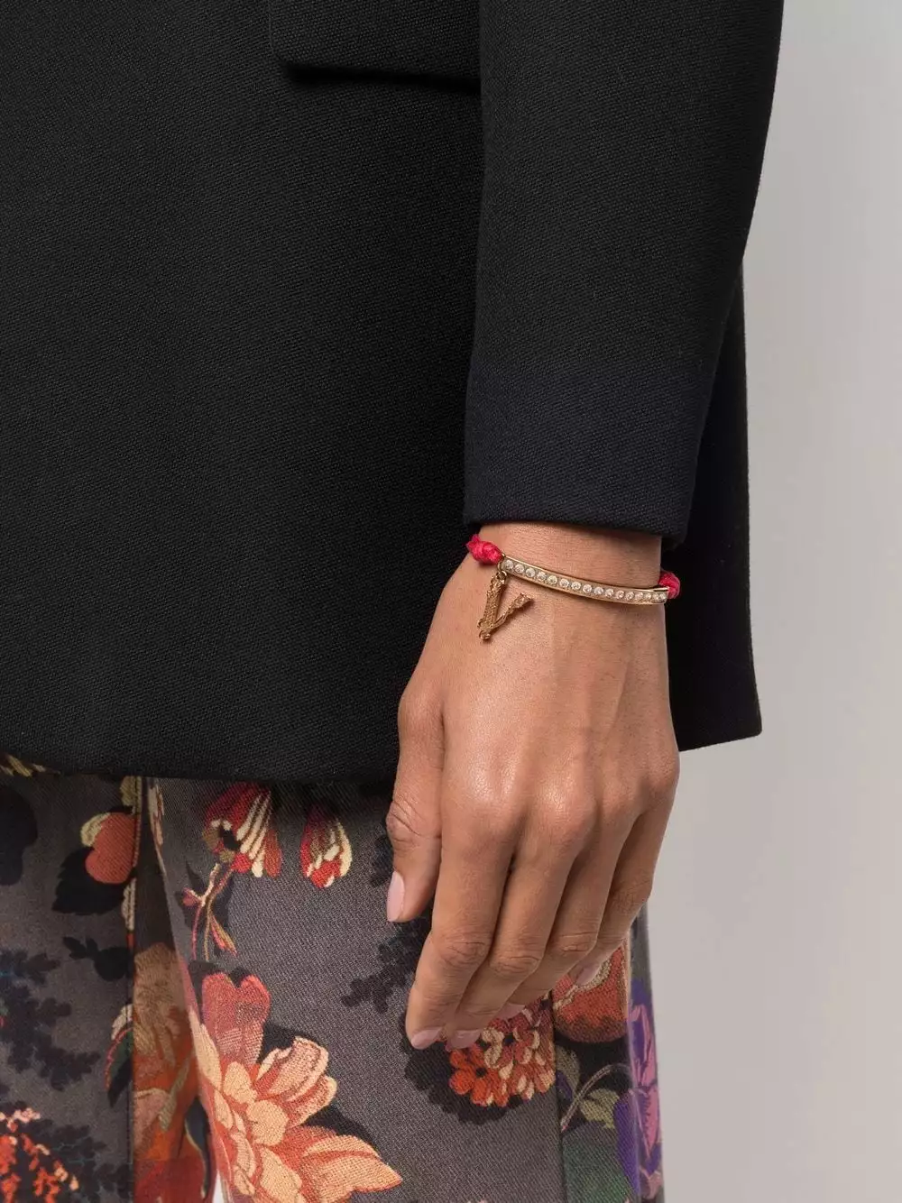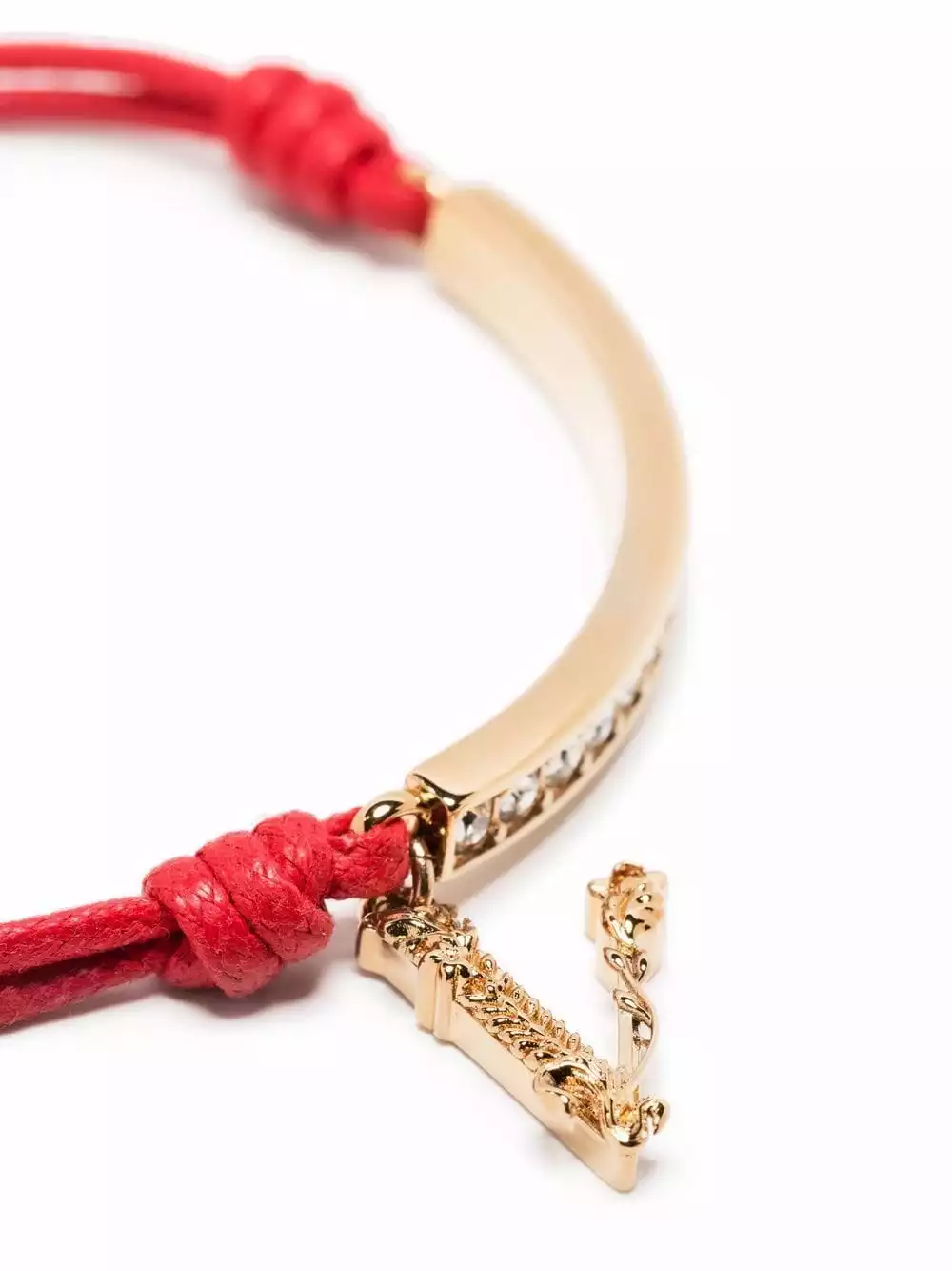 Boasting a delicate aesthetic, this Versace bracelet stands out thanks to its bold red tone and crystal detailing. This embellishment combined with gold-tone hardware adds an opulent touch to the piece.