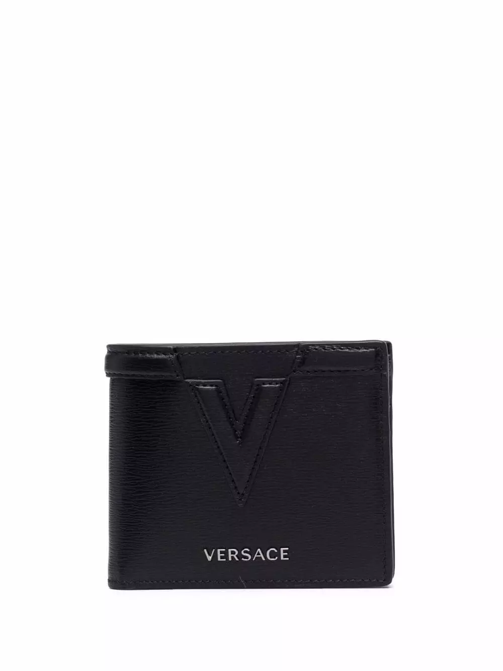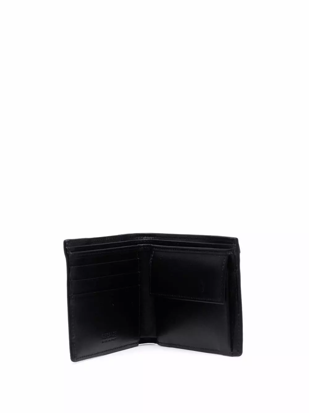 Versace’s wallet is a far cry from the brand’s maximalist aesthetic. This black calf leather iteration is free from decoration, save for a subtle embossed logo at the front.