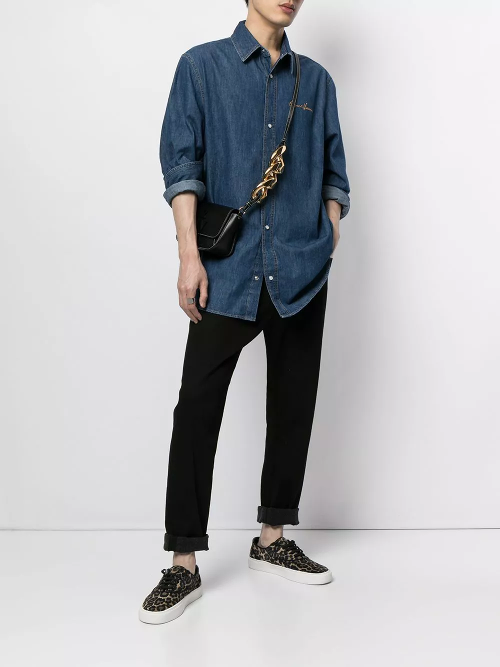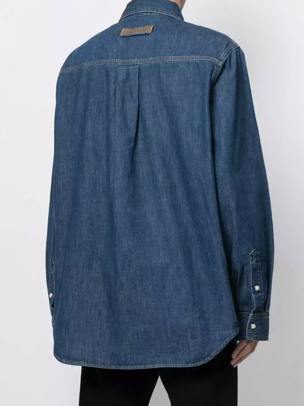 Balmain presents their take on the denim shirt with this blue oversized version. Designed with a an embroidered logo at the chest, this long-sleeve piece is ideal for those looking to inject their look with a contemporary edge, without straying too far from their classic laid-back look.