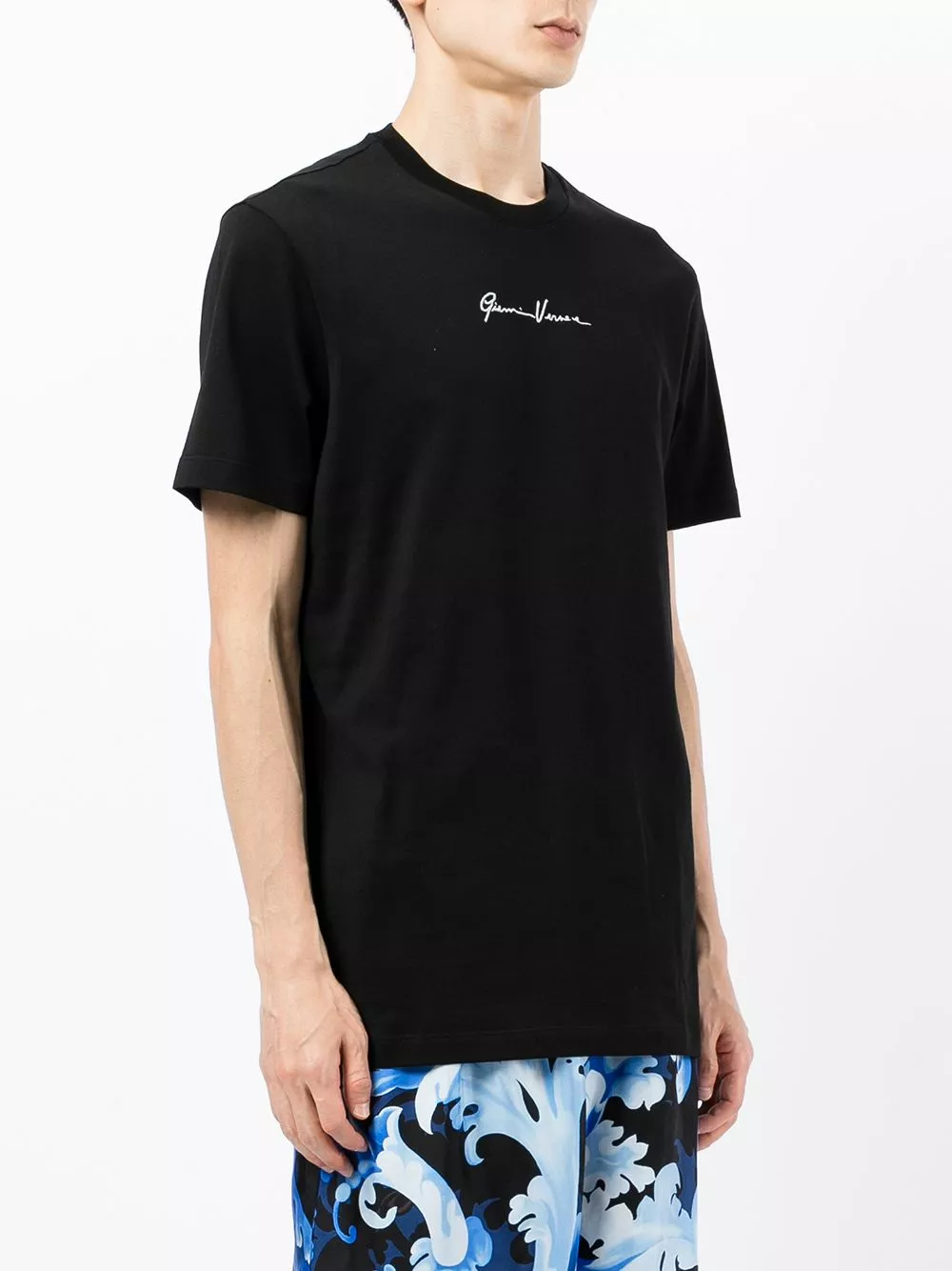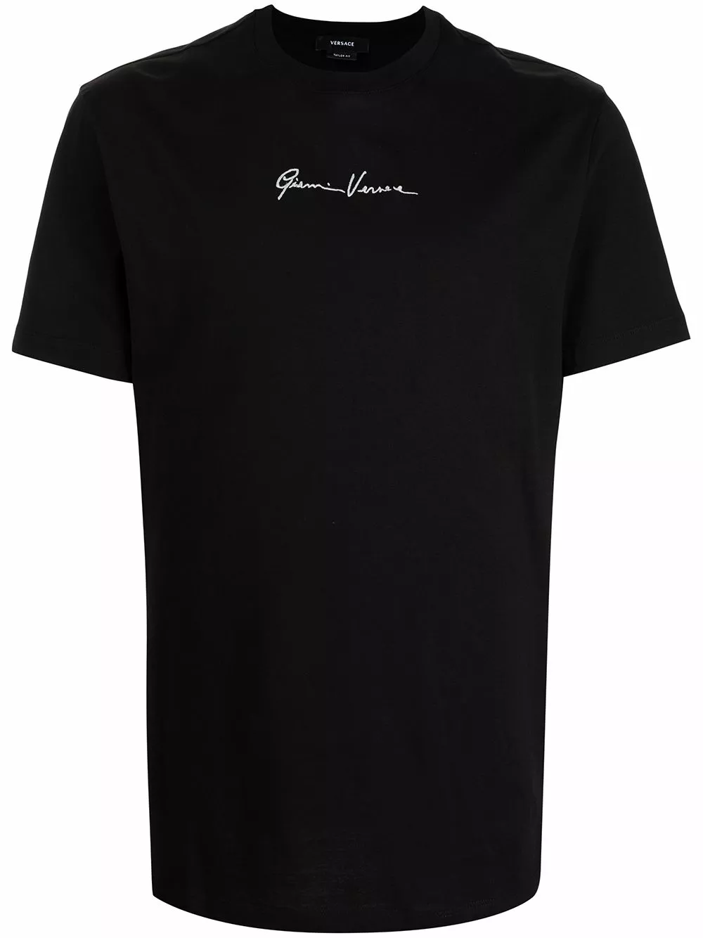 A classic short-sleeve construction allows the logo at the front of this Versace T-shirt to take the focus. Embroidered at the chest it stands out in a white hue.
