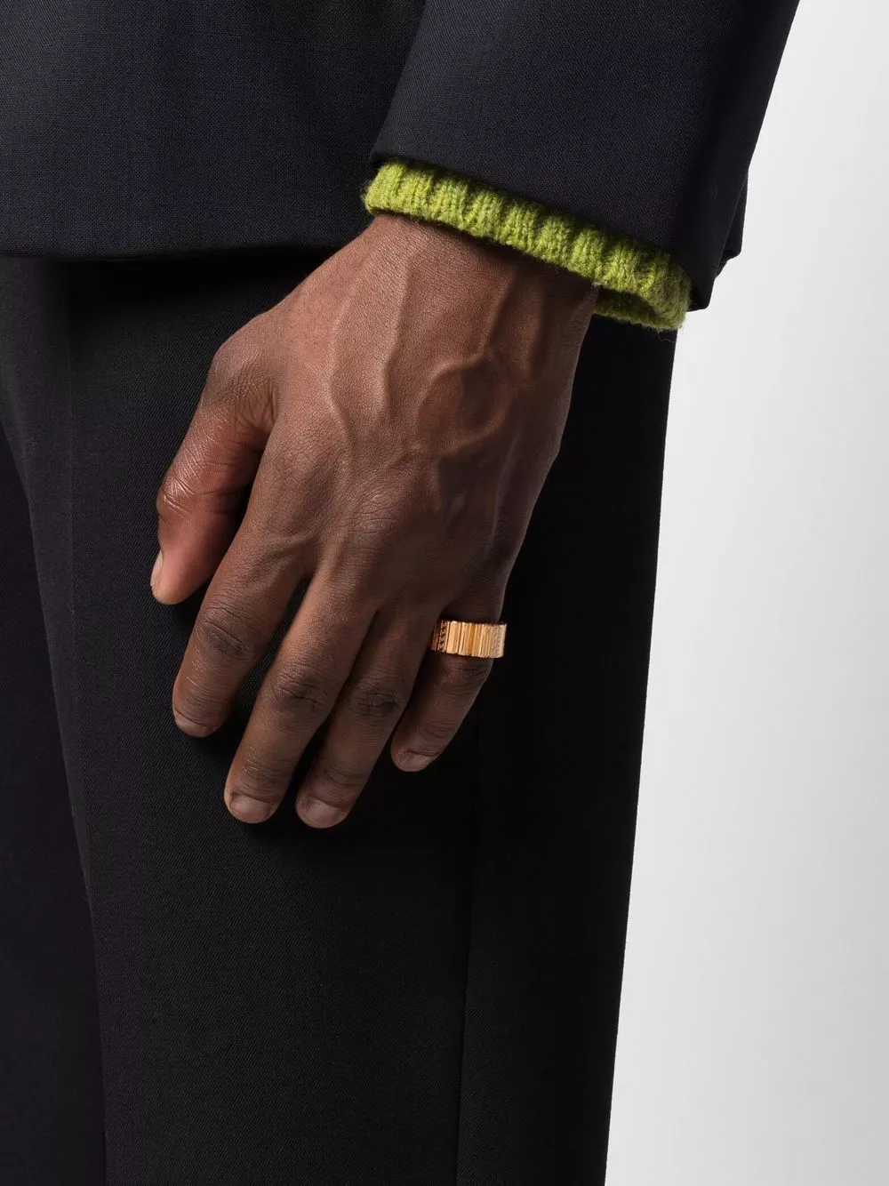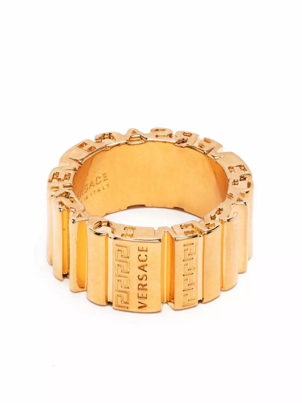 Versace’s ring aligns with the brand’s opulent aesthetic. This gold-tone piece depicts the brand’s signature and is paired with the house’s iconic Greca motif and featuring a chunky design.