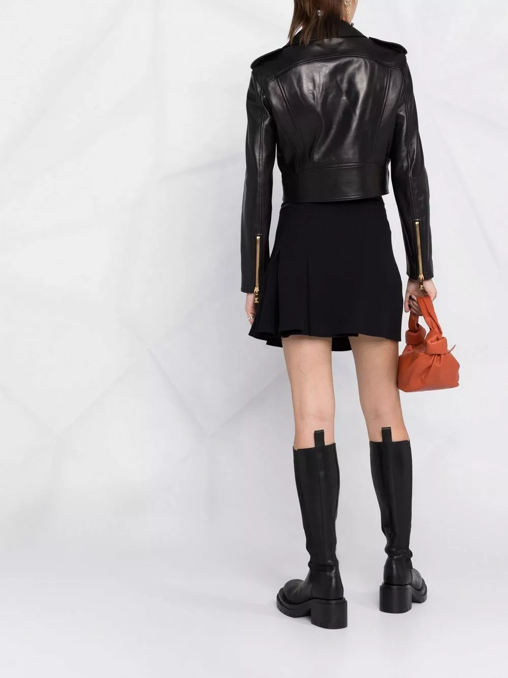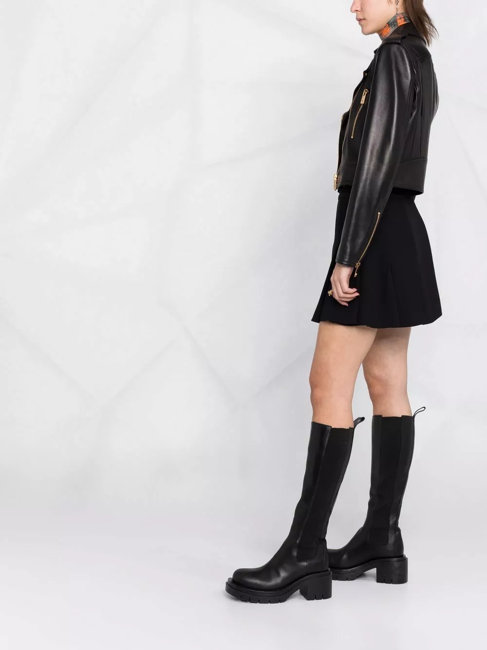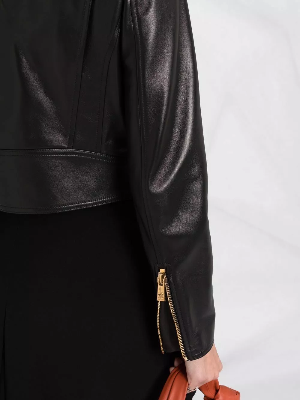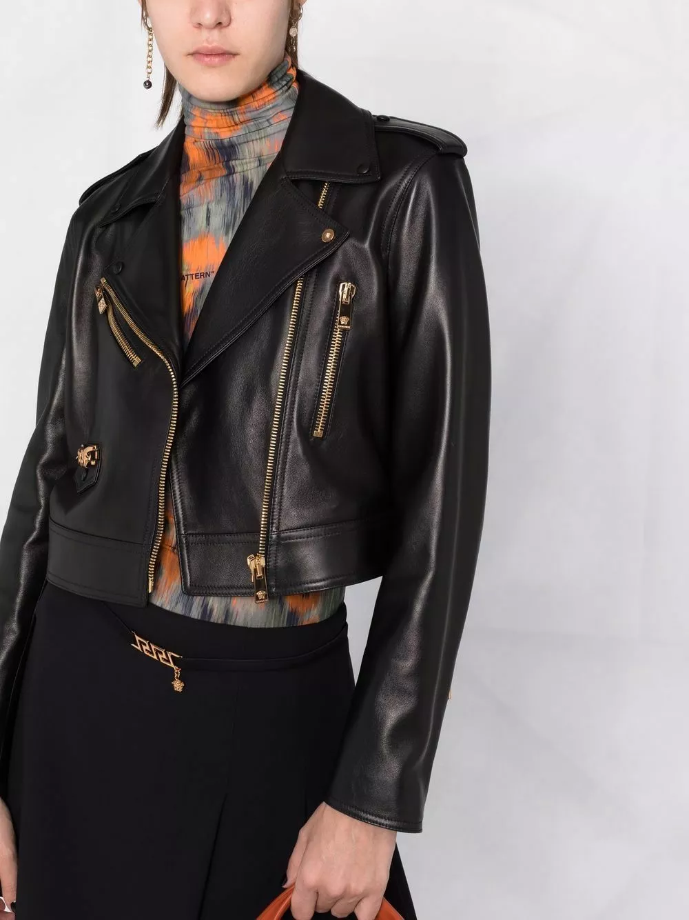 Versace logo-lining cropped biker jacket