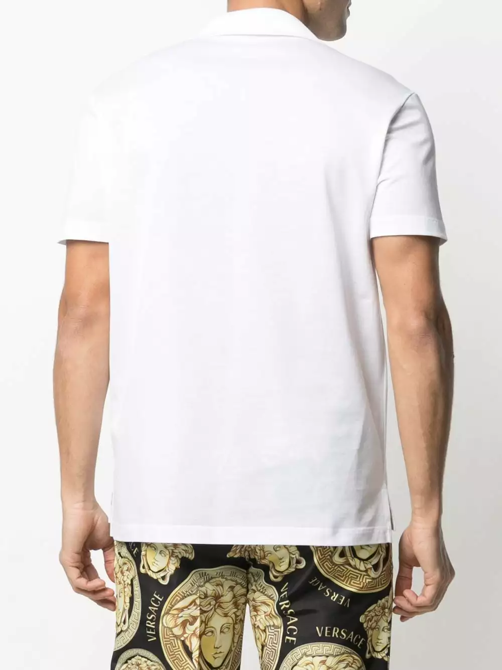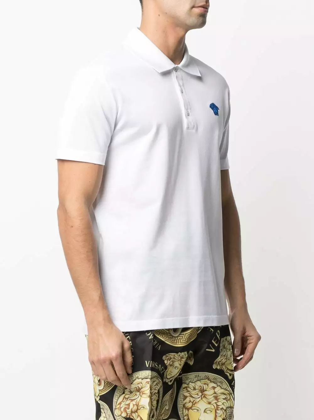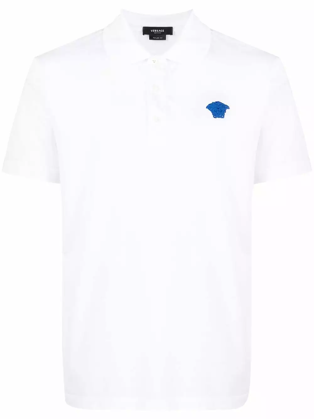 Keep it simple with this embroidered cotton polo shirt from Versace. Designed with a spread collar and a logo patch at the chest, this laid-back piece is just the thing to update your casual look.